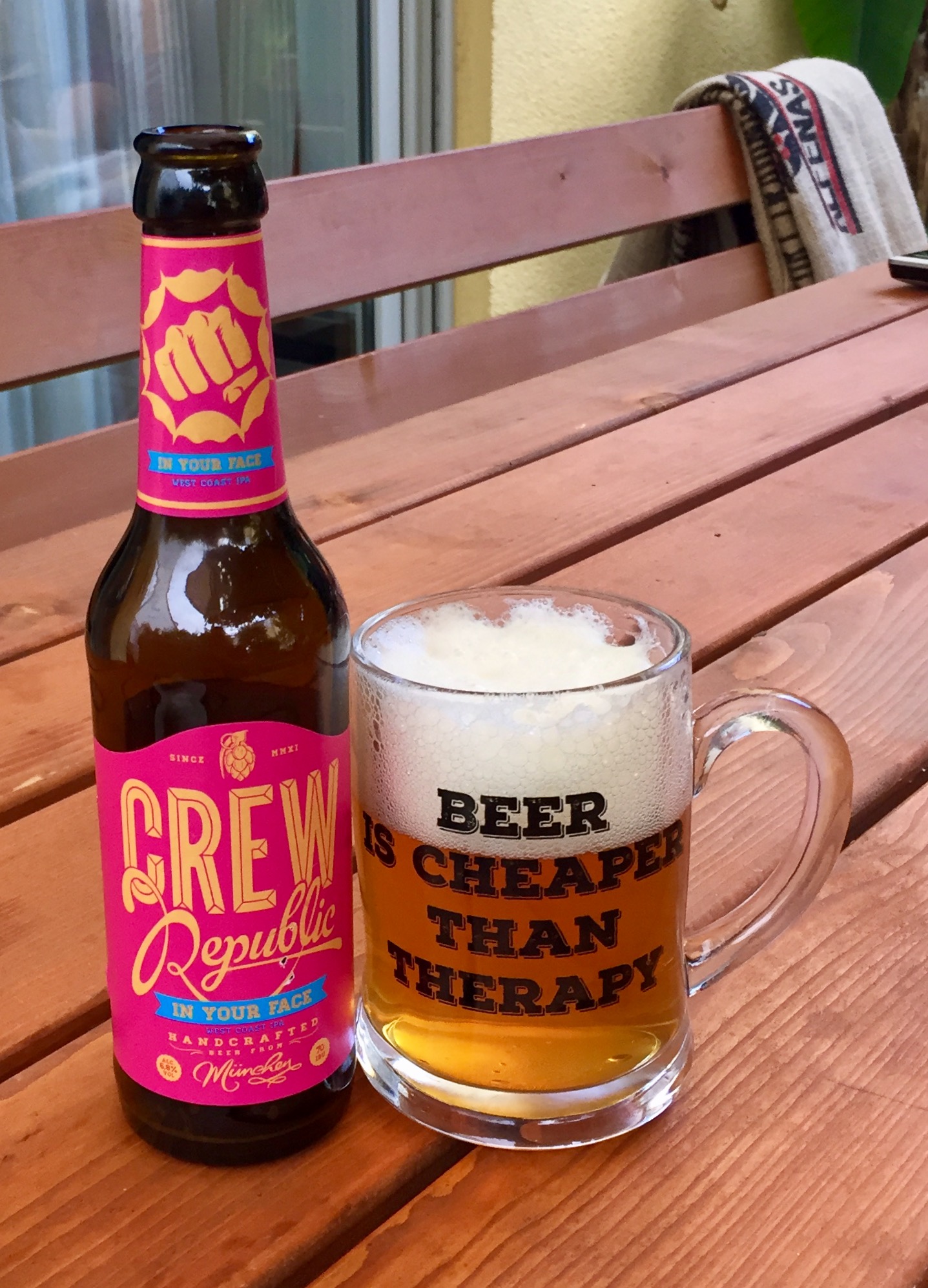 Das CR (nein, nicht CR7!!!) "In your Face" ist der Schnischnaschnu-Gewinner. Sehr g**les IPA, nahezu perfekt ausbalanciert in Hopfig-/Fruchtigkeit, Bittere und Basis-Malzigkeit. Nur etwas zu warm, war zu ungeduldig nach dem Einkauf.