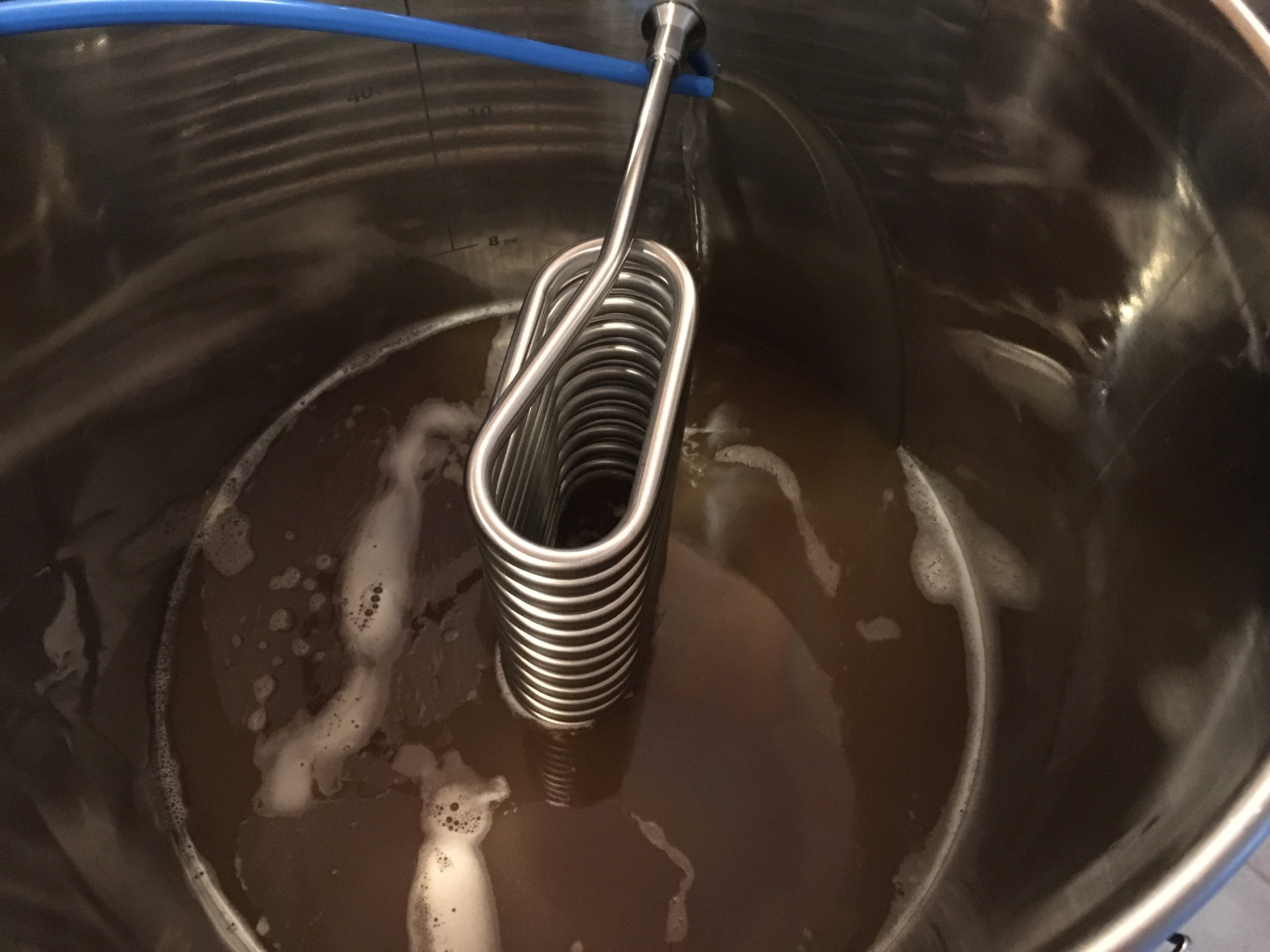 Bei Kochbeginn Hefe rehydriert, dass war ein Fehler. Hatte ich außer acht gelassen, dass ja erst auf 12°C runter gekühlt werden musste.