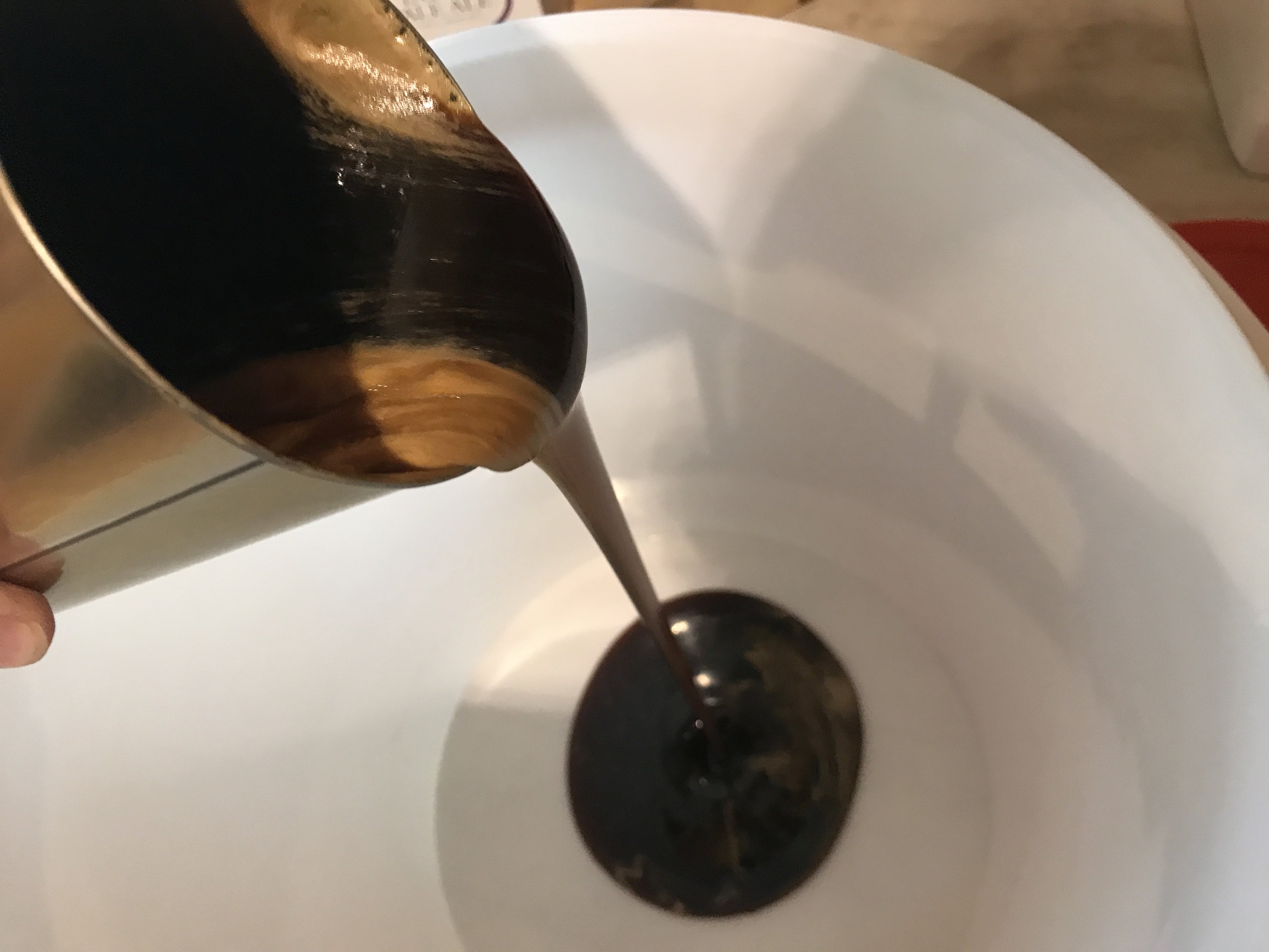 Nachdem alles wunderbar aufgelöst war habe ich das Hopfenpulver hinzu gegeben und erneut alles verrührt bis sich alles gelöst hat. Das Hopfenpulver hat einen extrem penetranten Geruch, ich denke es liegt an der Konzentration eine Mischung aus Citrus WC Reiniger und Ingwer.