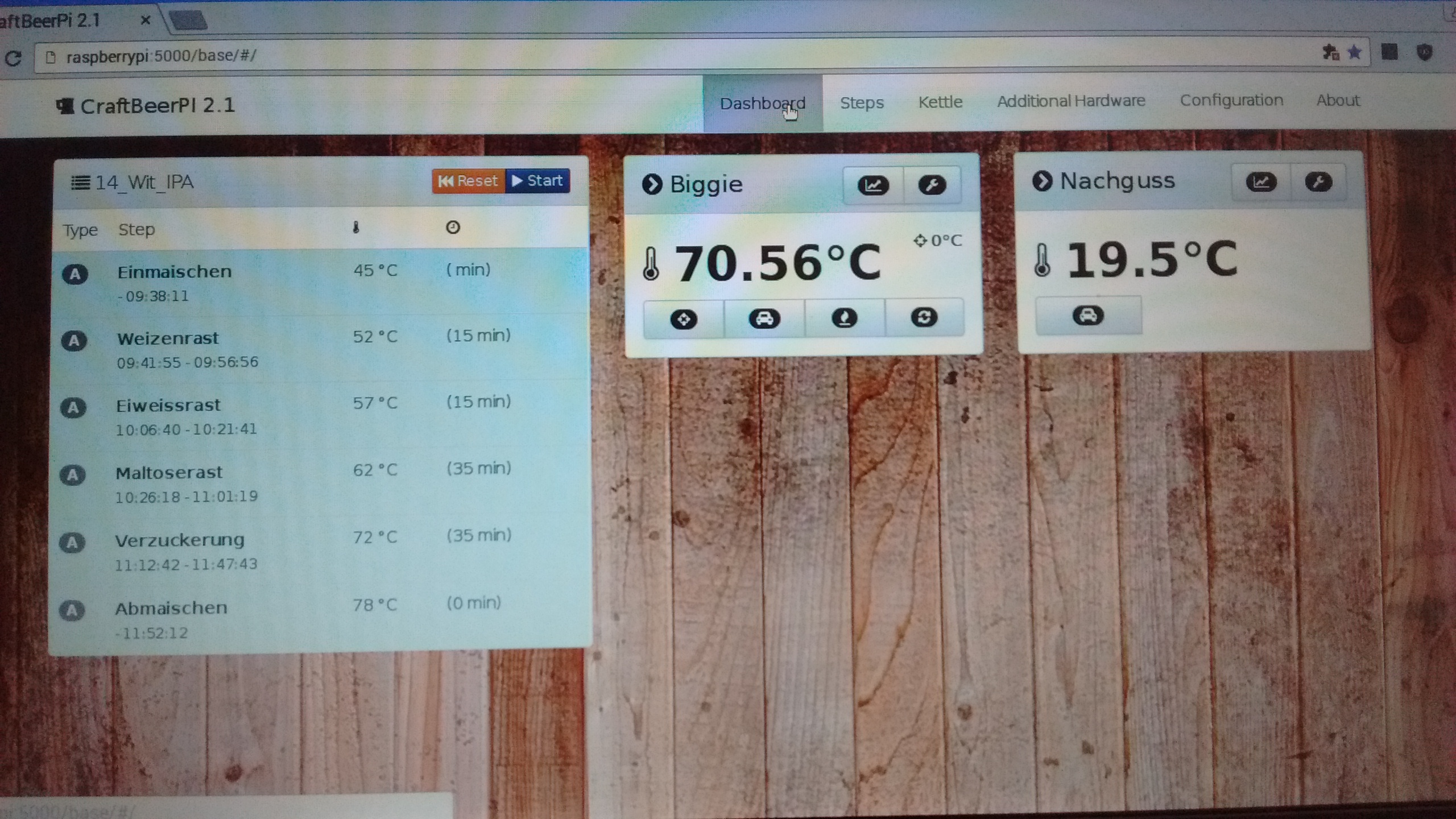 Sehr geil also und so ging es ab zum Probebrauen. Zunächst hat sich die Temperaturanzeige nicht automatisch aktualisiert, was lästig war. Erst nach umstecken der Fühler hat es dann hingehauen.