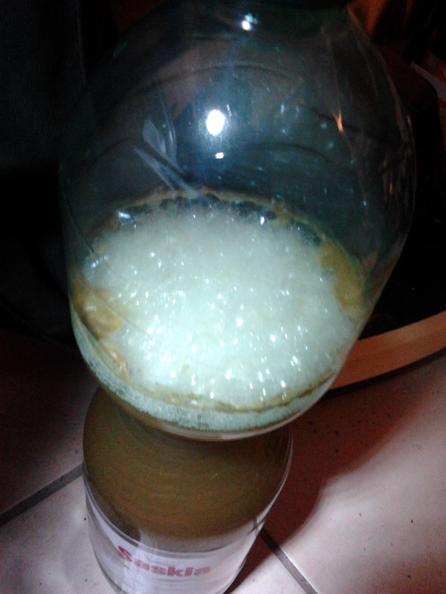 So, gestern wurde also obiges Bier gebraut und ich beschloss einen Liter meiner Würze abzuzweigen und den Versuch zu wagen, diesen mit dem bretonischen Gast zu vergären. Mit Freuden stellte ich heute Morgen bereits ein Überweißen und später dann schöne Hochkräusen fest. Vergoren wird das Experiment ebenso wie mein Hauptsud bei derzeit 21°C im Keller.