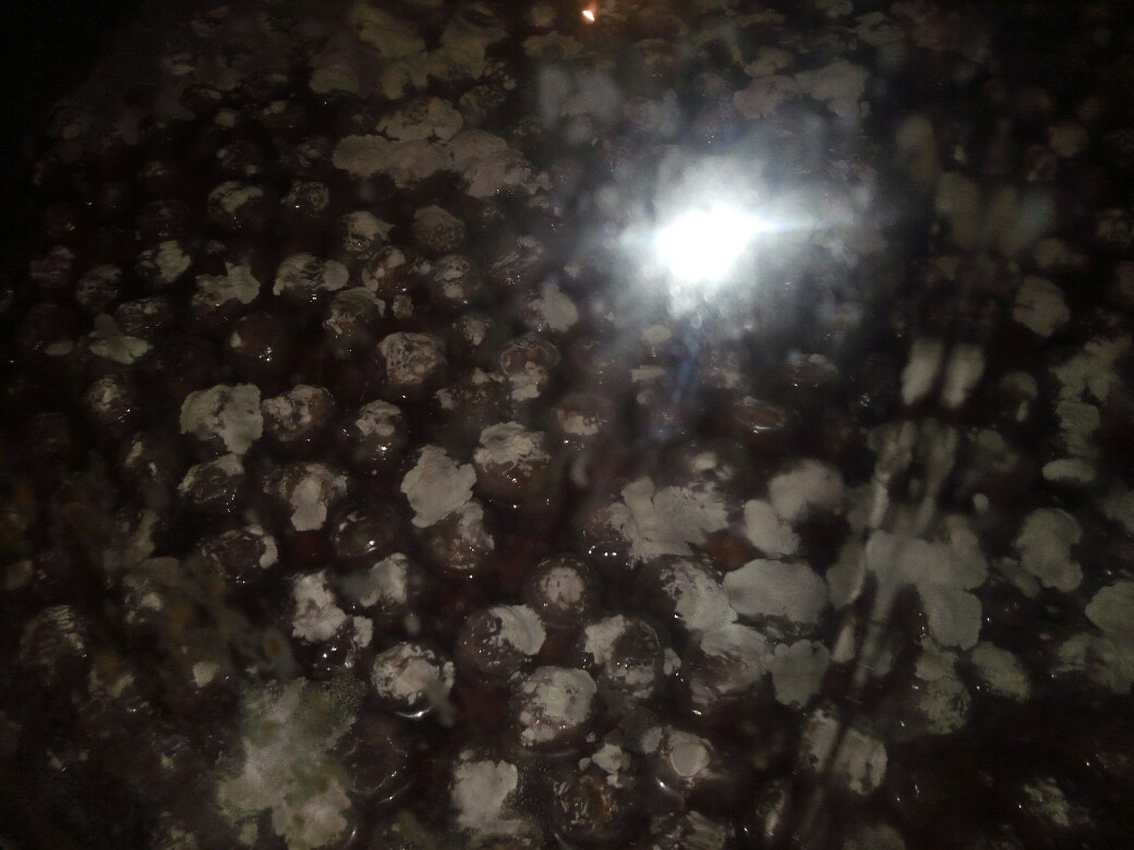 Nach 6 Monaten werden dann 100g/l Sauerkirschen (gefroren, so dass die Haut reißt und die ganze Frucht sich zersetzten kann) und 50ml/l Sauerkirschsaft dem Jungbier hinzugegeben.
