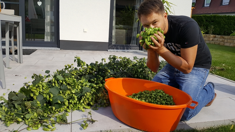 Jetzt will ich doch mal von meinem Hopfenanbau und der Ernte vom Anfang der Woche berichten.