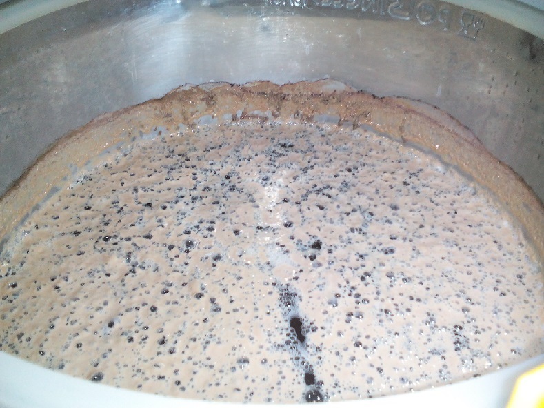 Wenn die Gärung noch in Gang sein sollte, lässt sich nach der Hefeernte eher ein "lichtes" Gelb entdecken und kurz nach der Ernte zeigen sich sofort wieder "Schauminseln" auf der Oberfläche.