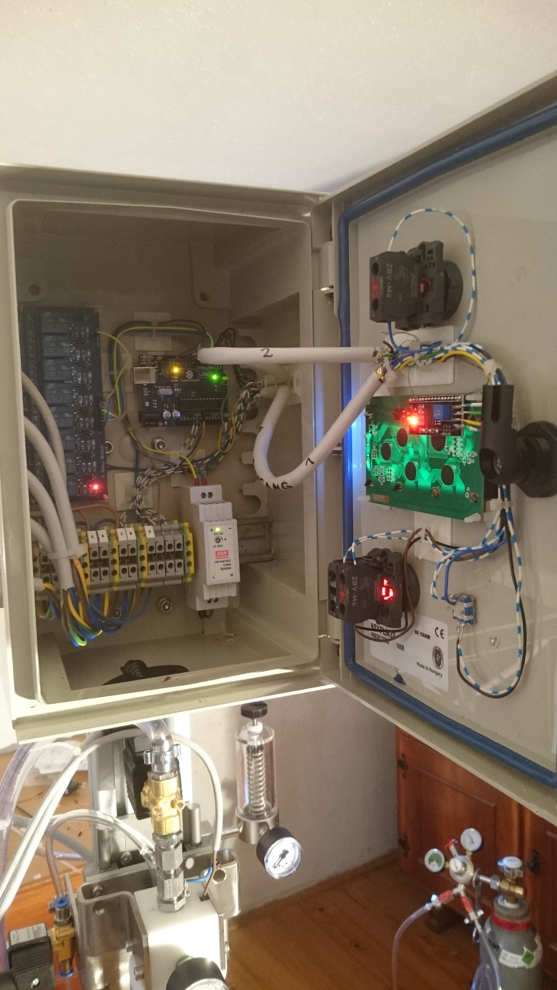 Der linke Klarsichtschlauch ist der Ablauf, falls es tatsächlich mal überschäumt. Der Rechte für die Co2 Vorspannung.
