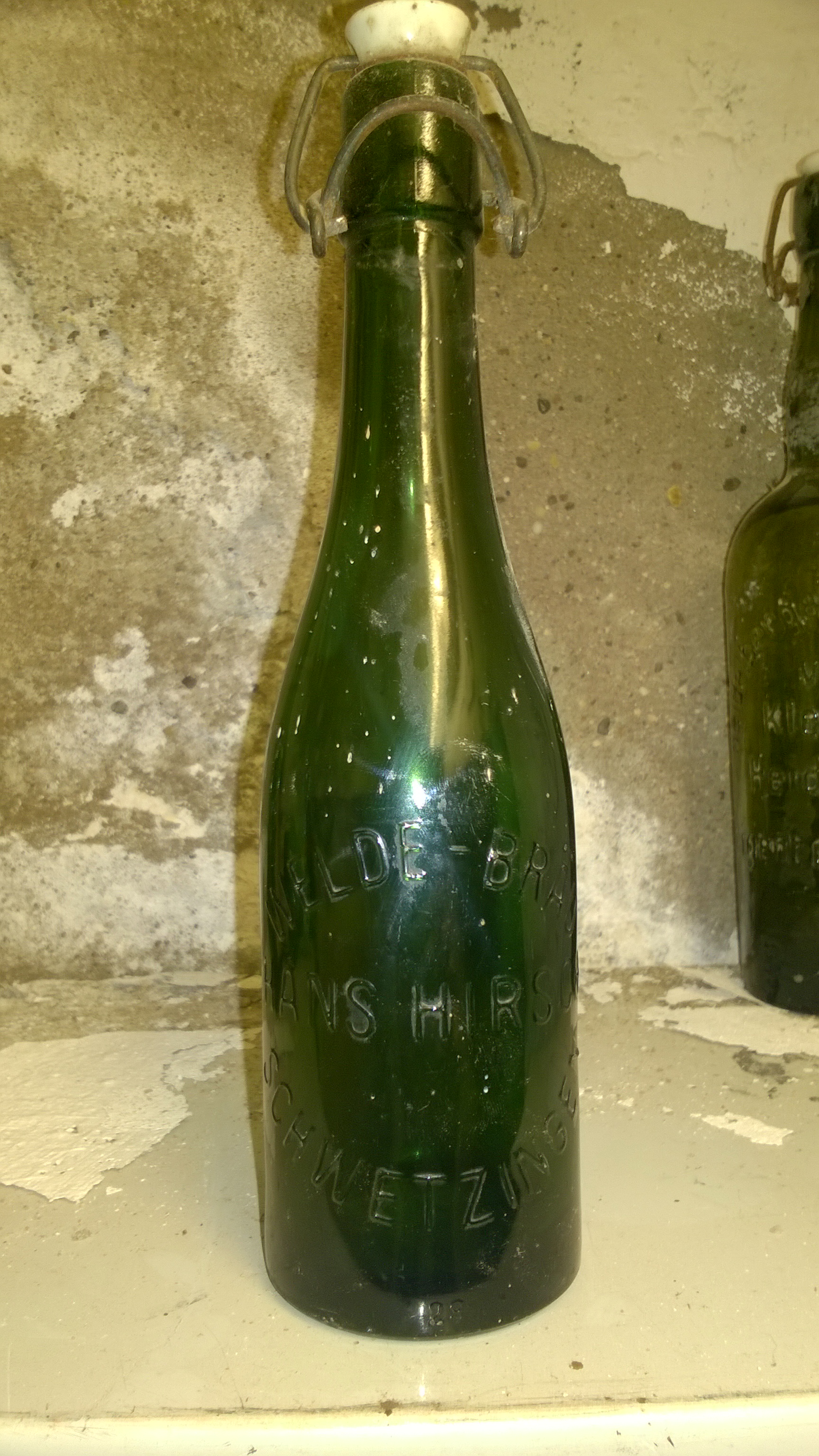 Bei Sanierungsarbeiten habe ich da mal eine ausgegraben. Vermutlich Mitte 1950er Jahre. Schloßbrauerei Trabelsdorf, Landkreis Bamberg. Flasche hat im Boden ein W im Kreis - Wiegand Glas, Steinbach am Wald.