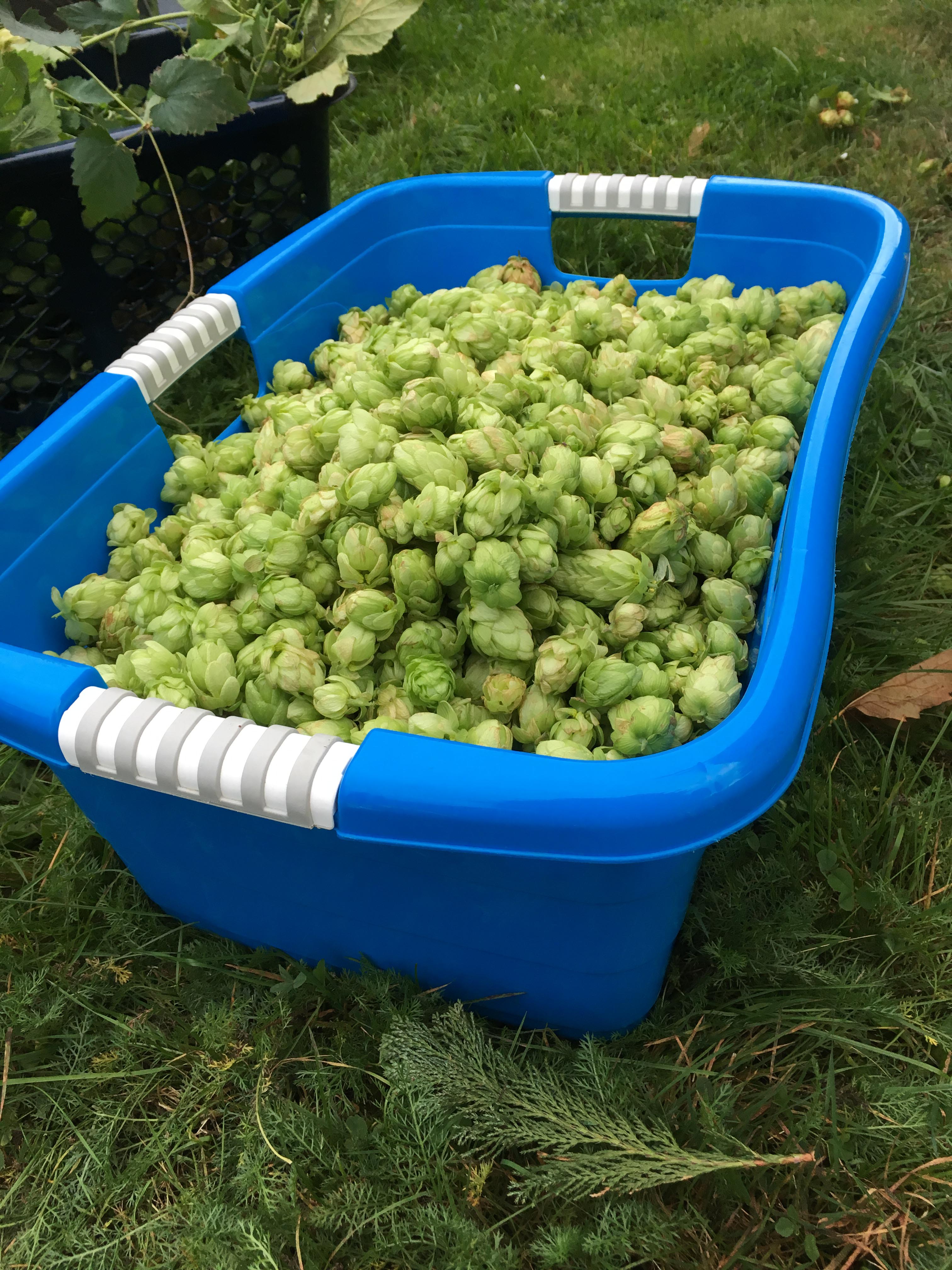 ich habe gestern meine beiden Pflanzen geerntet. Der Polaris im ersten Jahr ca. 200g getrocknet. Dann der Cascade, der mich und meine Geduld echt herausgefordert hat. Es nahm einfach kein Ende, Resultat 1 1/2 Wäschekörbe voll Dolden. Bedingt durch die Menge muss ich ich lufttrocknen lassen.