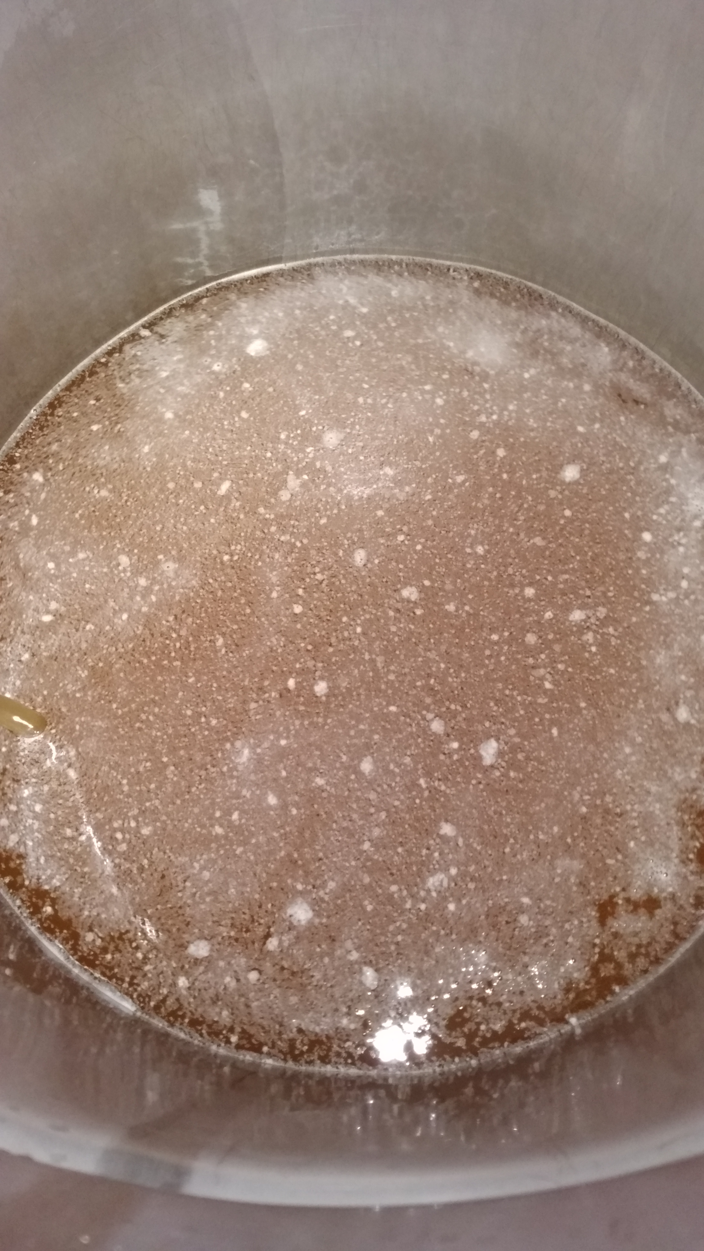 Bevor man hier eine harmlose Schaumdecke und aufschwimmende Hopfenharze auf einem unscharfen Handyfoto zu einer vernichtenden Infektion macht, stelle ich mal zwei essentielle Fragen: Seit wann gärt das denn überhaupt? Von wieviel Stammwürze auf wieviel Restextrakt bist Du denn gekommen?