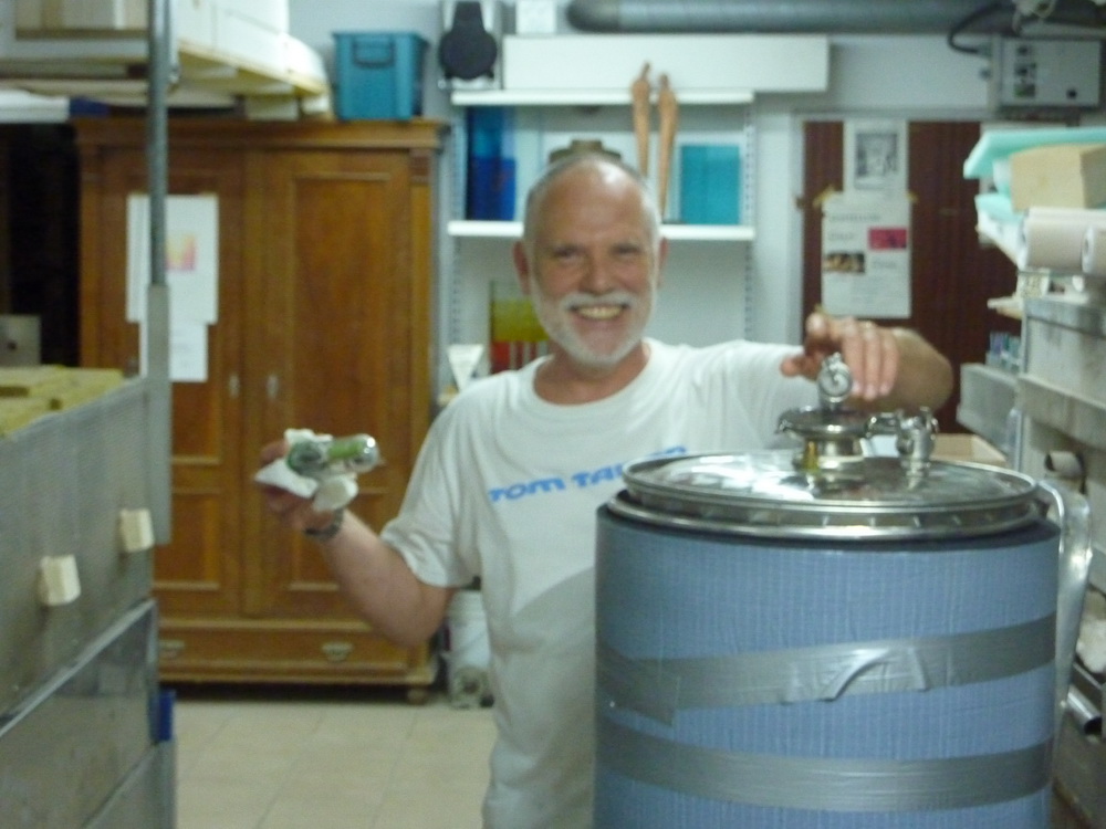 Vorigen Samstag kam Stephan (Tozzi) bepackt mit 50 kg Dingemans-Malz, Candy-Sirup , Cassonade und einem Starter der Originalhefe des TW12 bei mir in Österreich an :Bigsmile