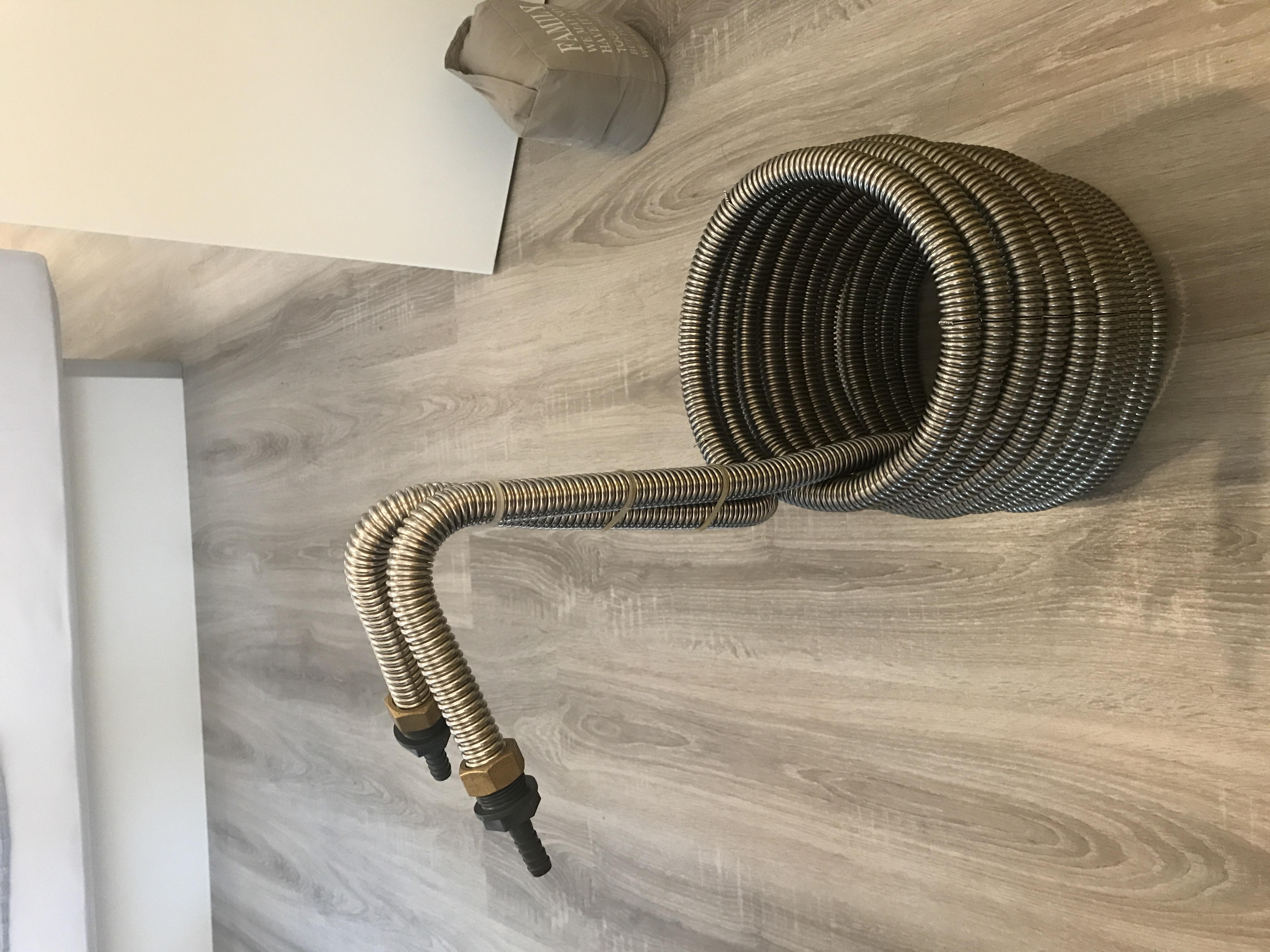 Werde mir das mit dem Wellrohr anschauen und sonst den Spiralkuehler fuer 50L nehmen.