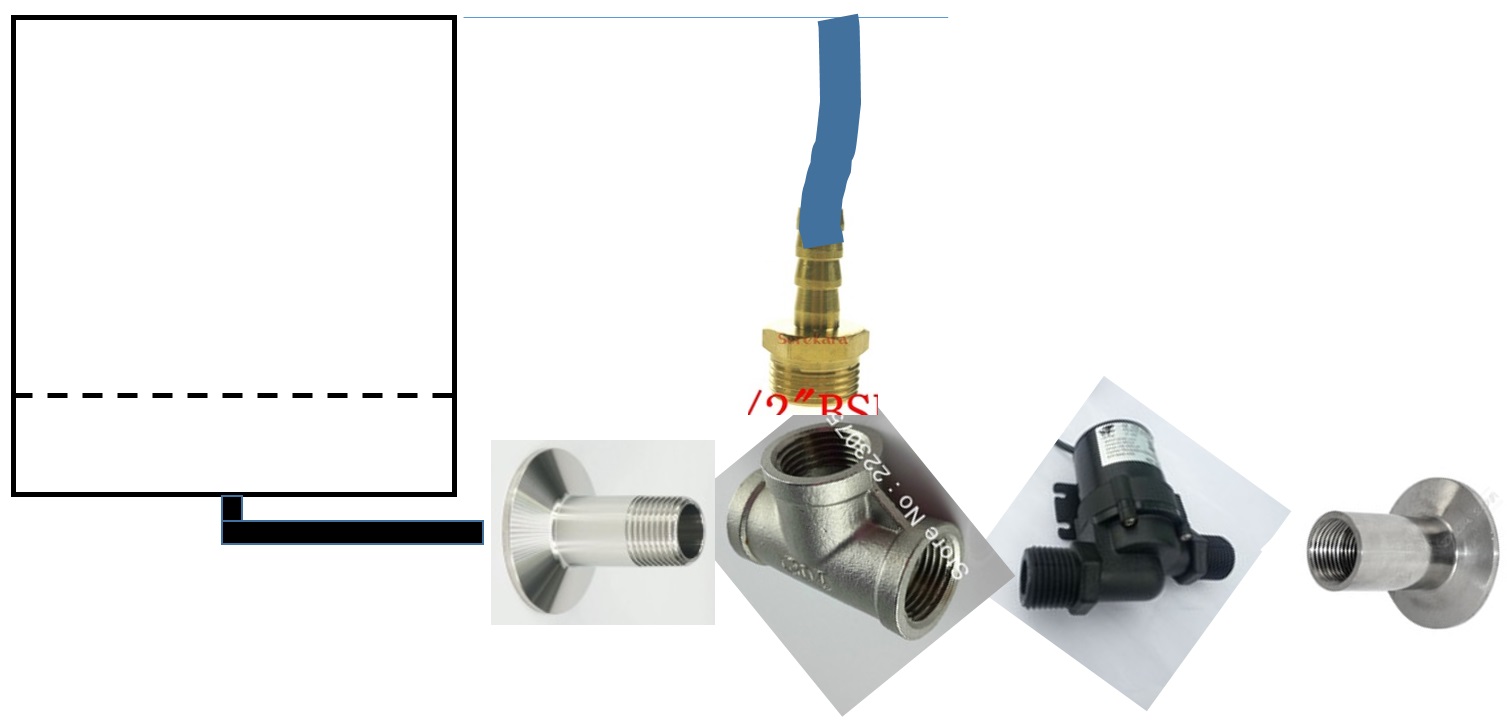 Genau, ich habe bei mir einfach ein Loch in den Triclamp-Nippel unterhalb des Gewindes gebohrt, einen abgesägten 10er VA-Schlauchnippel (Von nem alten Bierschlauch) eingelötet und fertig war mein T-Stück. So hat man weniger Verschraubungen.