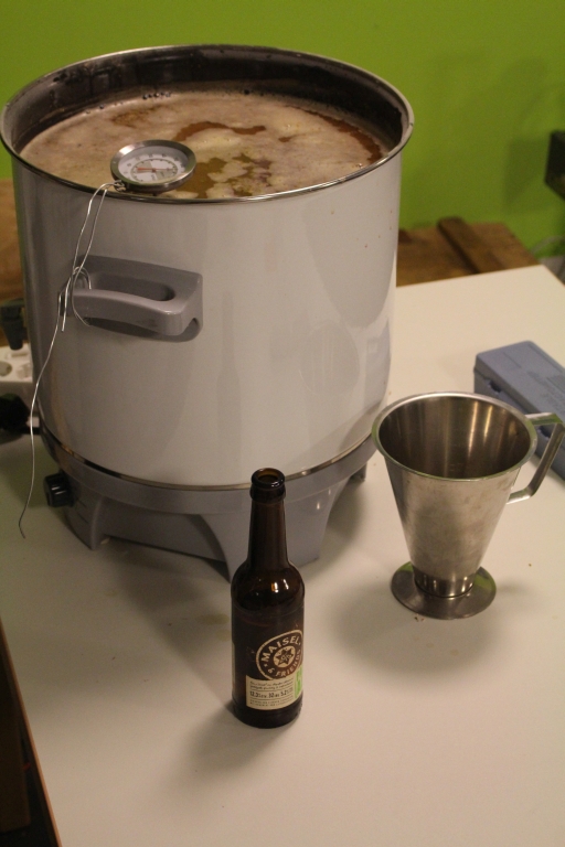 Leider hab ich kein Foto vom Würzekochen, das wird aber nächste Mal gemacht, wenn wir wieder mit 2+ Leuten brauen. Dann kann man vllt auch mal ein Video davon machen.