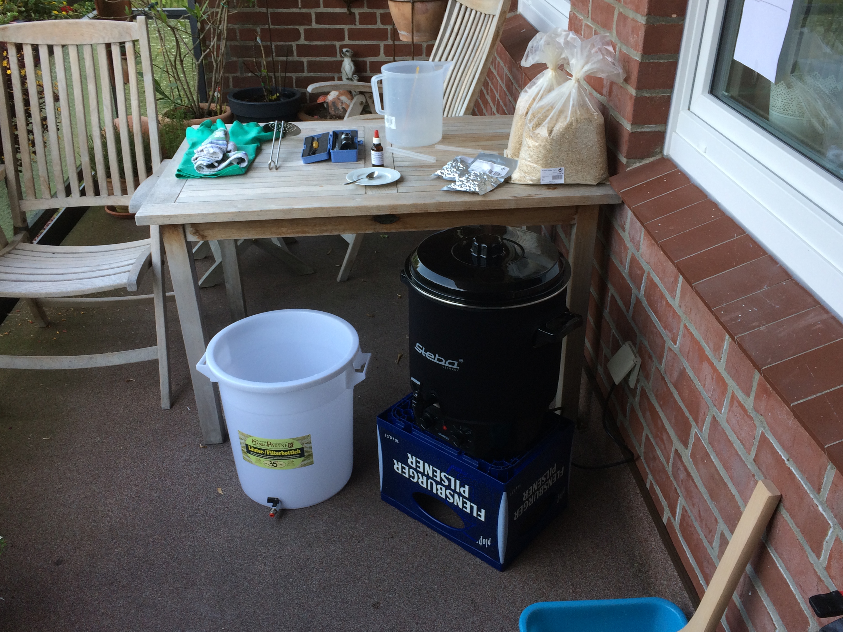 Achja, ich habe exakt 23 Liter erhalten mit einer SW von 13,6 (14 Brix). Alles im grünen Bereich, denke ich. Ich bin auf das Ergebnis gespannt.