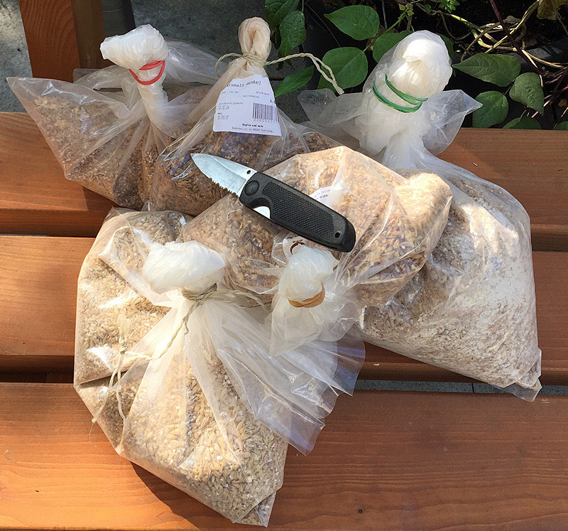 Die separat gekochte und dann abgekühlte Restwürze hab ich dann gleich mit der Hefe (nach dem Rehydrieren natürlich) bekannt gemacht. Eigentlich hatte ich mir vorgenommen, Gutmann oder Schneider zu strippen, was ich leider vermasselt hatte (hab nämlich einfach vergessen, davon ein paar Flaschen zu kaufen). Daher die WB-06-Notfalltüte aus dem Lager. (Ich weiß, einige mögen sie nicht, aber ich hatte mal vor Jahren ein ganz brauchbares Bier damit gemacht.). Man sieht schon leichte Aktivität: