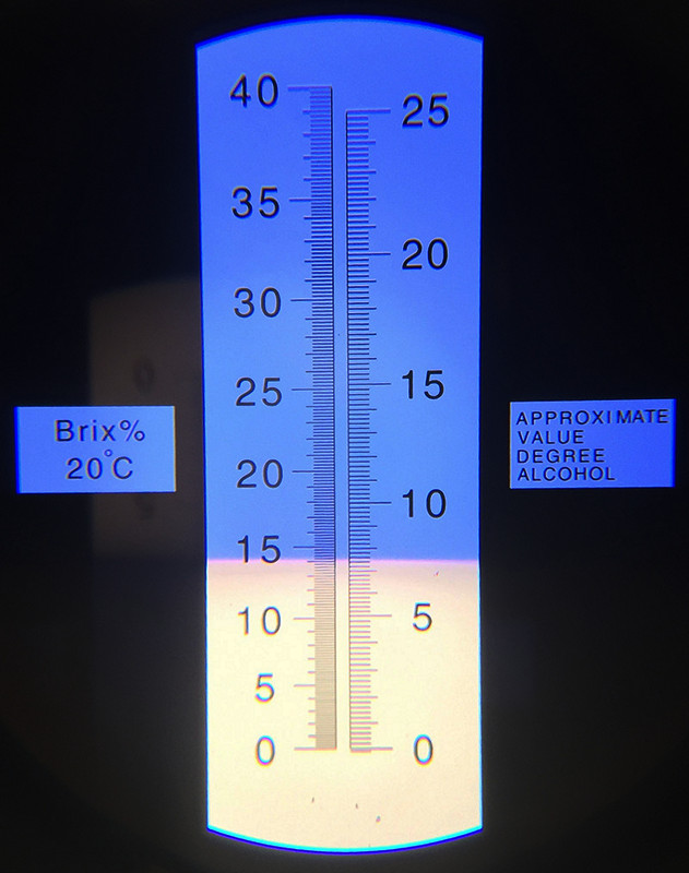 Im Einkocher kam ich dann auf ca. 14%Bx, da ich aber noch einen kleineren Teil der später geläuterten Würze da nicht untergebracht und separat gekocht hatte, liege ich alles in allem knapp über 13%Bx / 12,6°P.