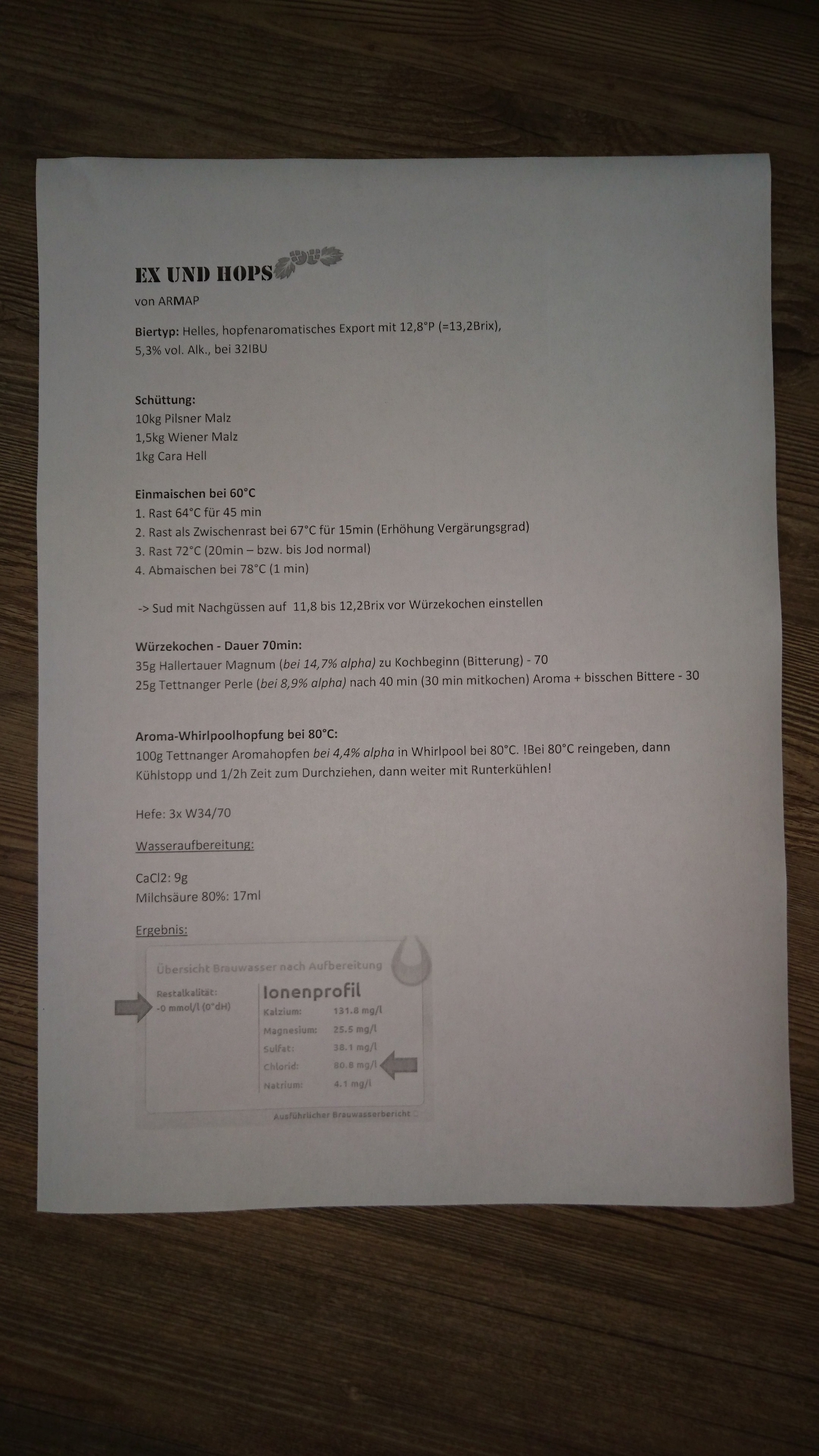 Wasseraufbereitung, die Gabe der Bitter- und Aromahopfung ist wie im Rezept angegeben umgesetzt worden.
