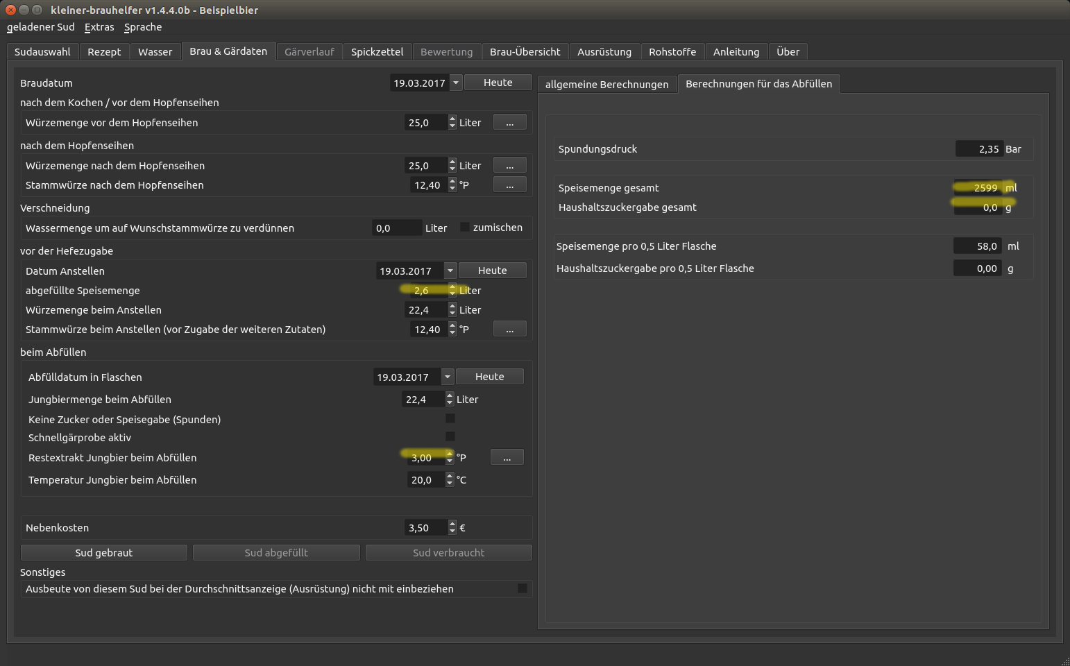 Abschätzen kannst du das aber jetzt auch schon wenn du bei Restextrakt Jungbier beim Abfüllen den voraussichtlich zu erreichenden Extrakt einträgst.