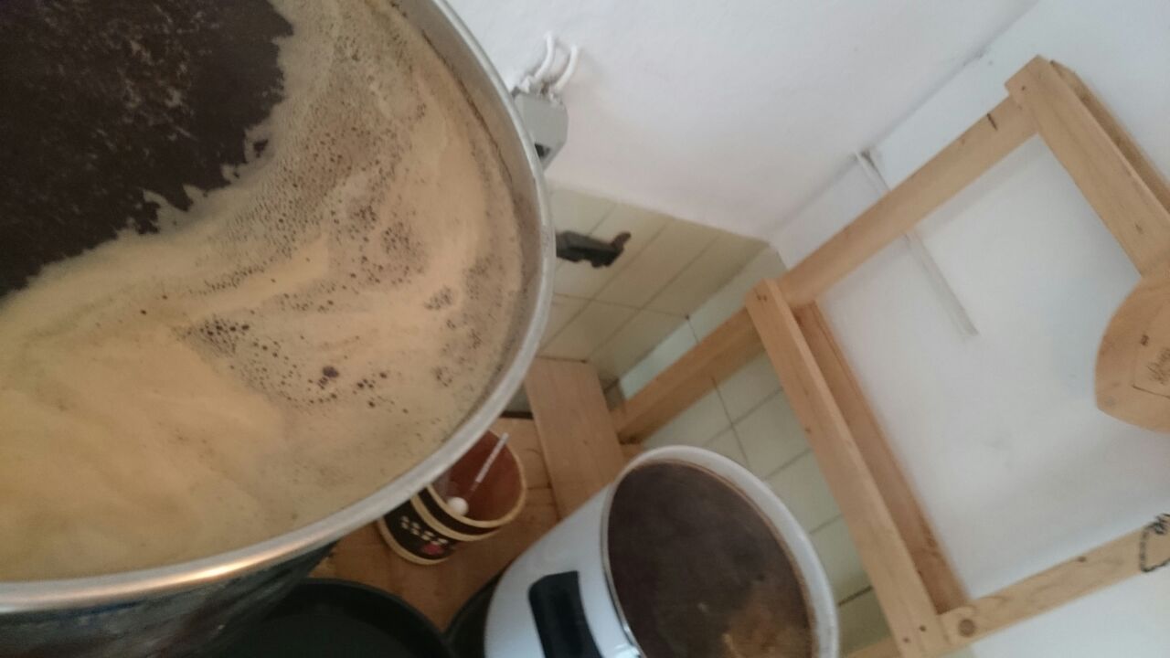 Die restlichen 45 Liter werden in einem anderen Behälter fermentiert da mir über 100 l Gewürzbier dann doch zu viel war.