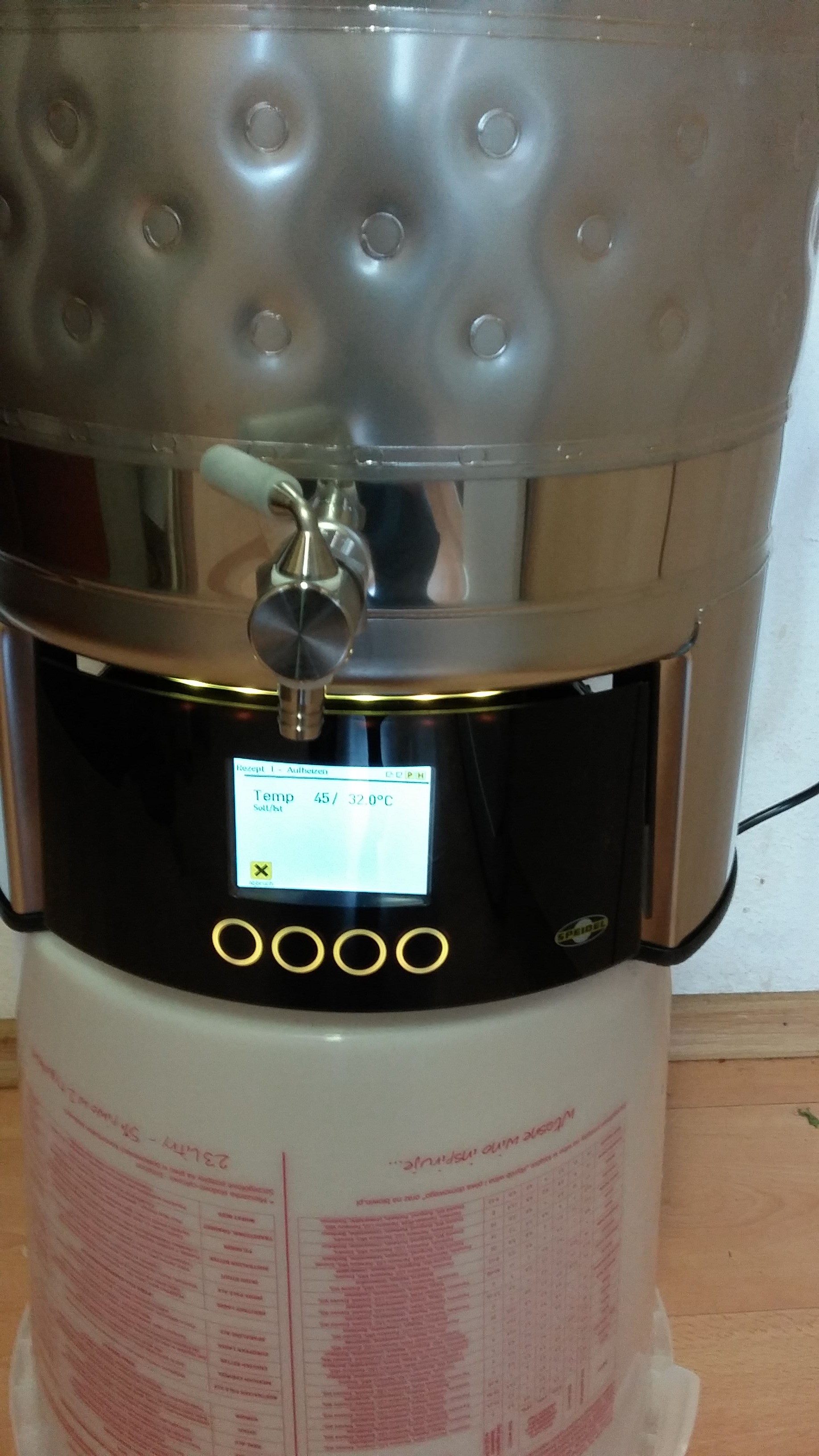Hinweis: Die Kühlung per Doppelmantel am PLUS funktioniert bei der Verwendung des kurzen Malzrohres und nur der halben Würzemenge nur sehr eingeschränkt (Speidel Shop)