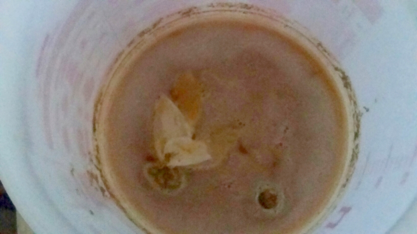 Ach ja, das Bild von der Gärung wurde NACH dem ersten Abziehen der braunen Gerbstoffe geschossen.