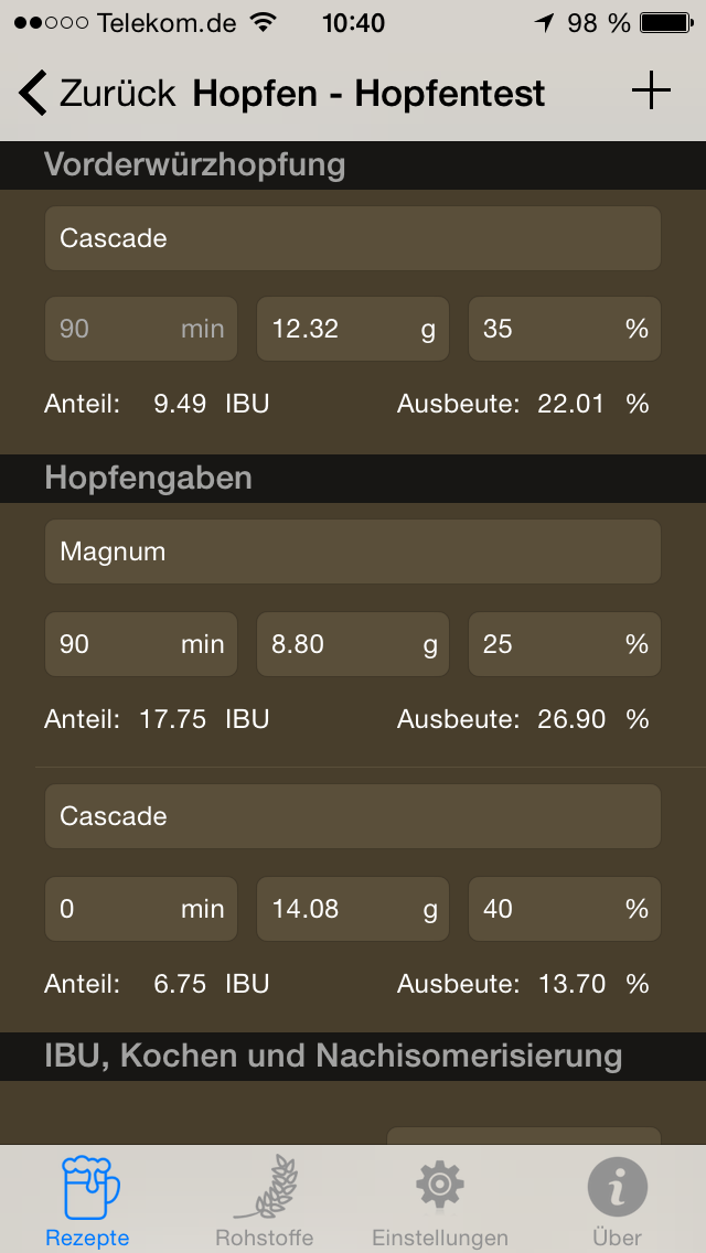 Was mir auffält, ist dass, wenn man die IBU Anteile zusammenrechnet, bekommt man einen unterschiedlichen Wert.