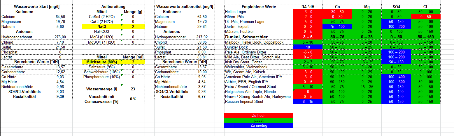 Vorsichtig wäre ich bei der pauschalen Berücksichtigung von Sauermalz. Wenn dein Wasser es nicht unbedingt benötigt, würde ich verzichten.