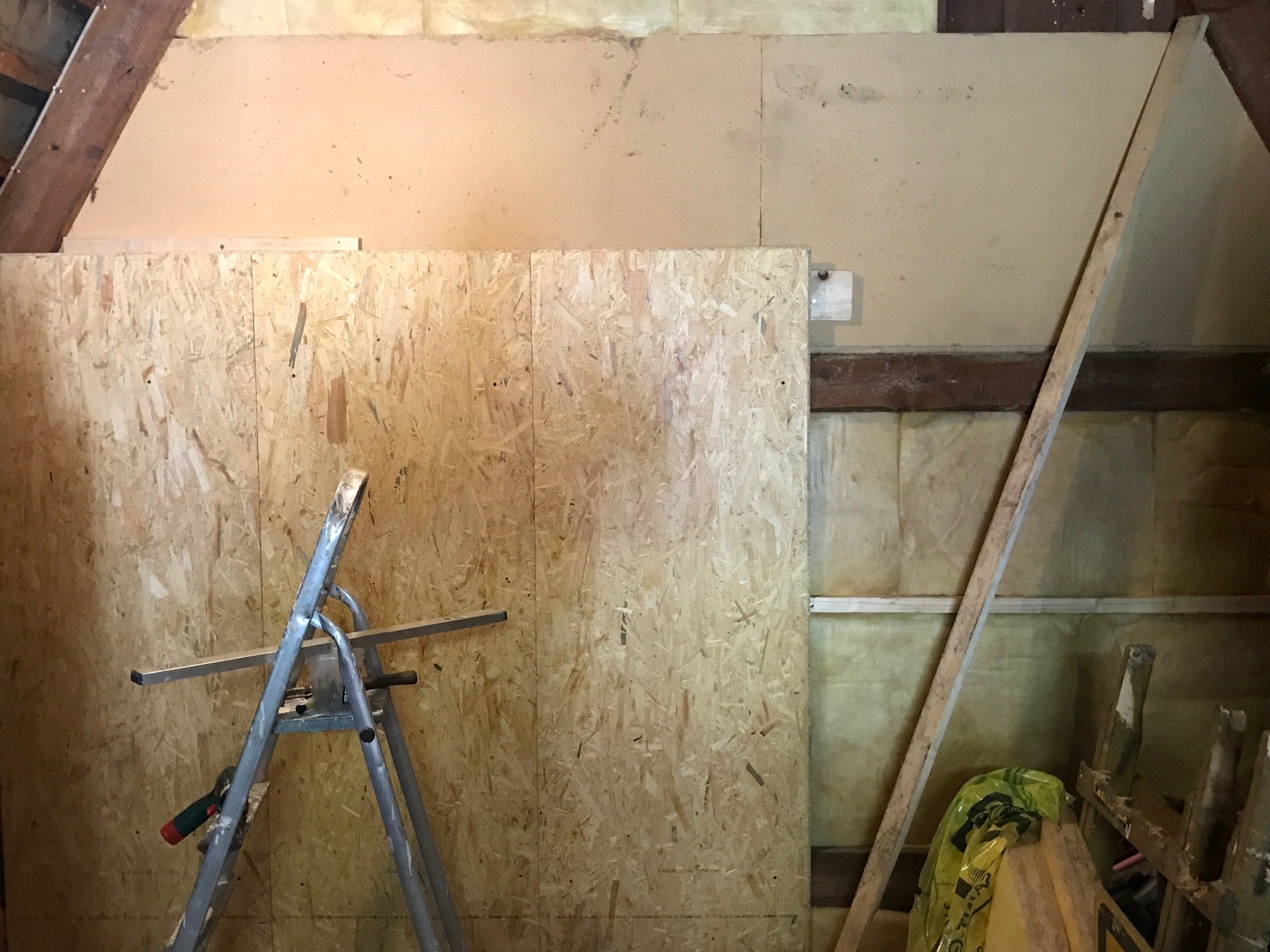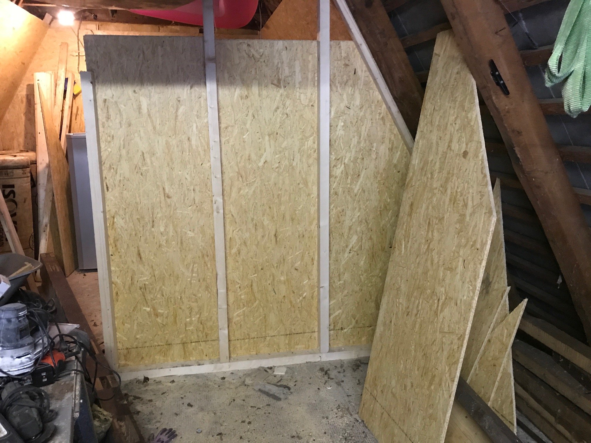 Der Bootsschuppen von aussen Die letzte hälfte wurde mit 200mm Pawatex, Mineralwolle und Klemmfilz vernünftig gedämmt und mit Feuchtebeständigen OSb Platten als Innenwände verlegt.