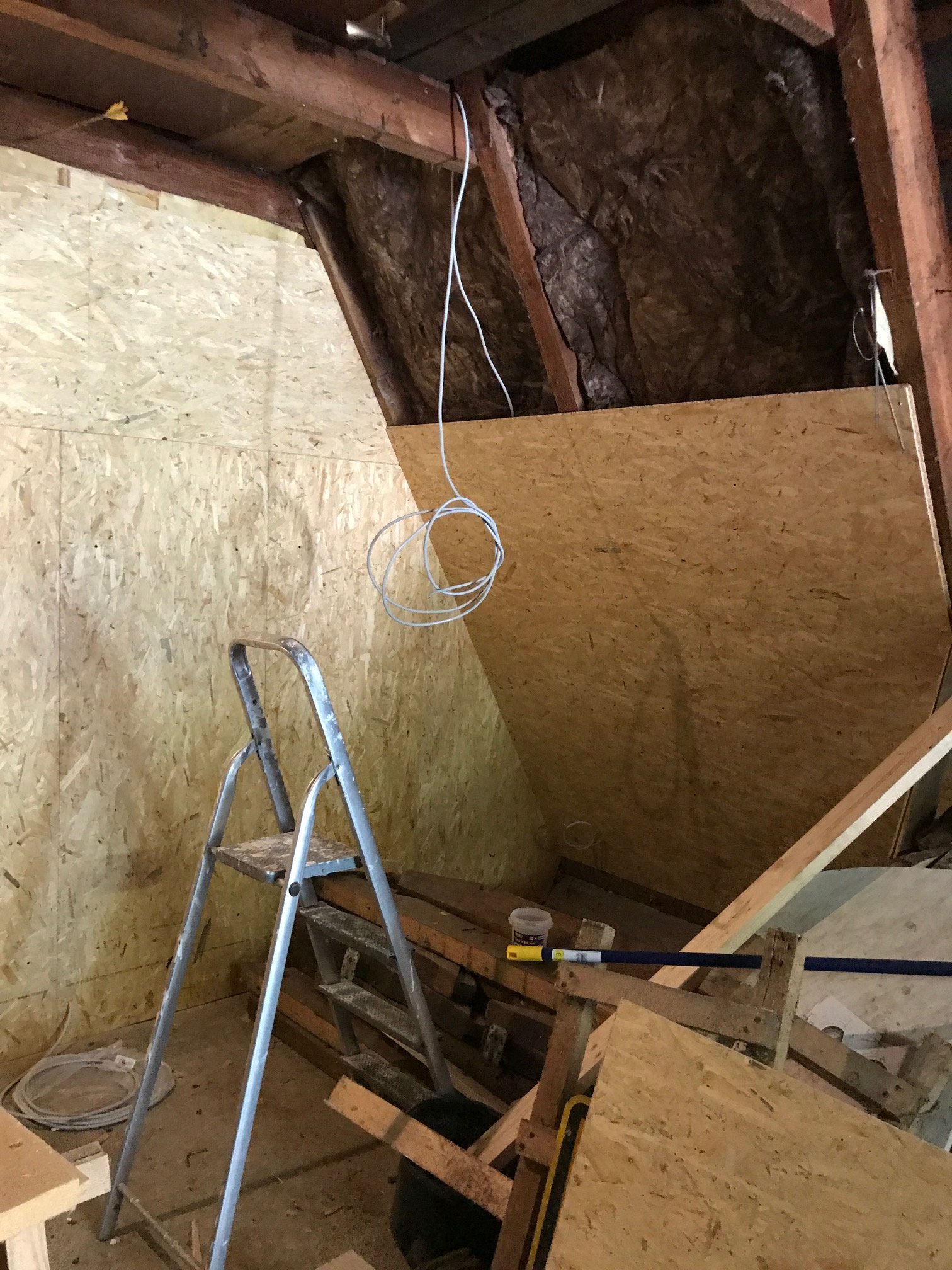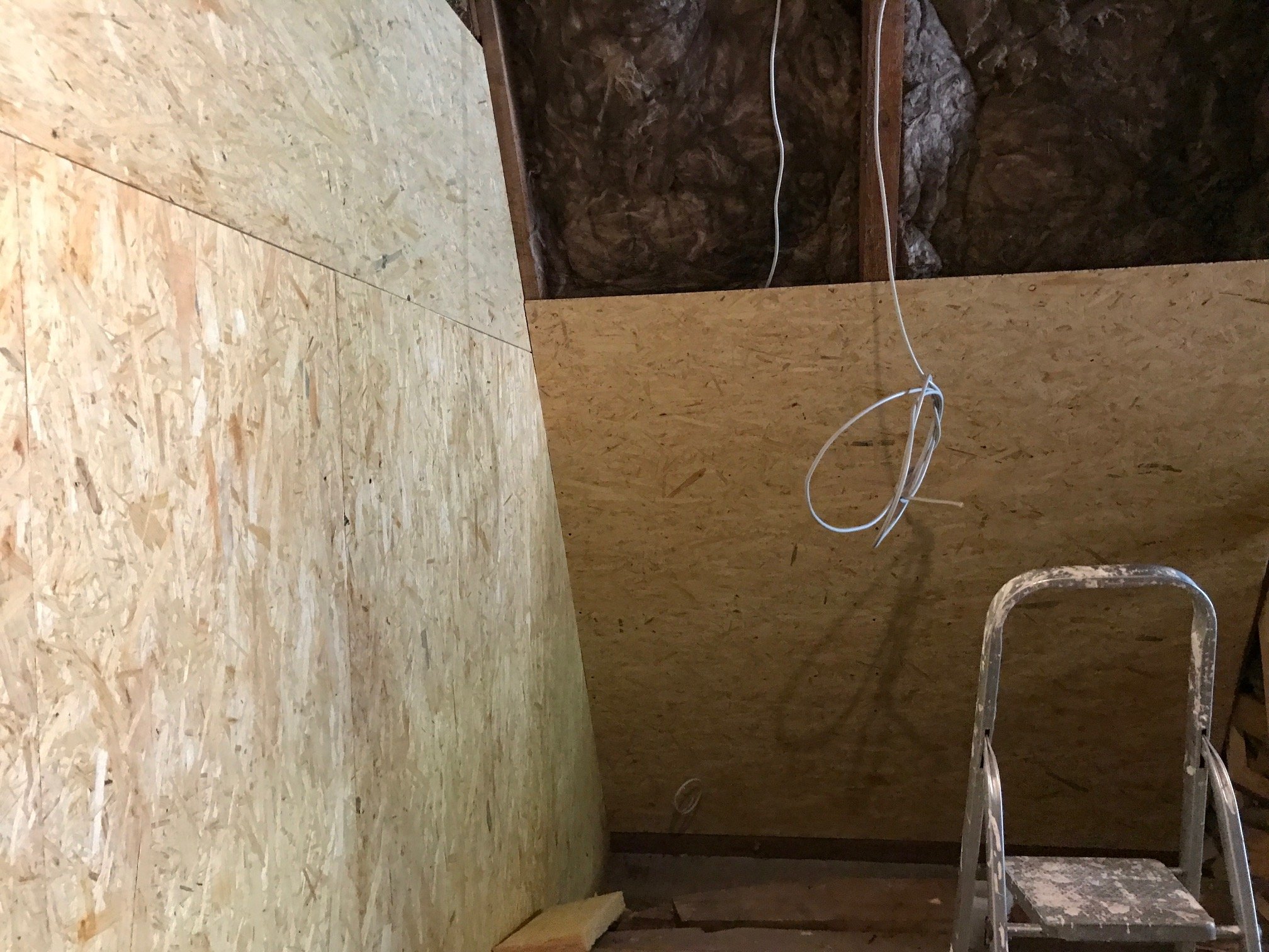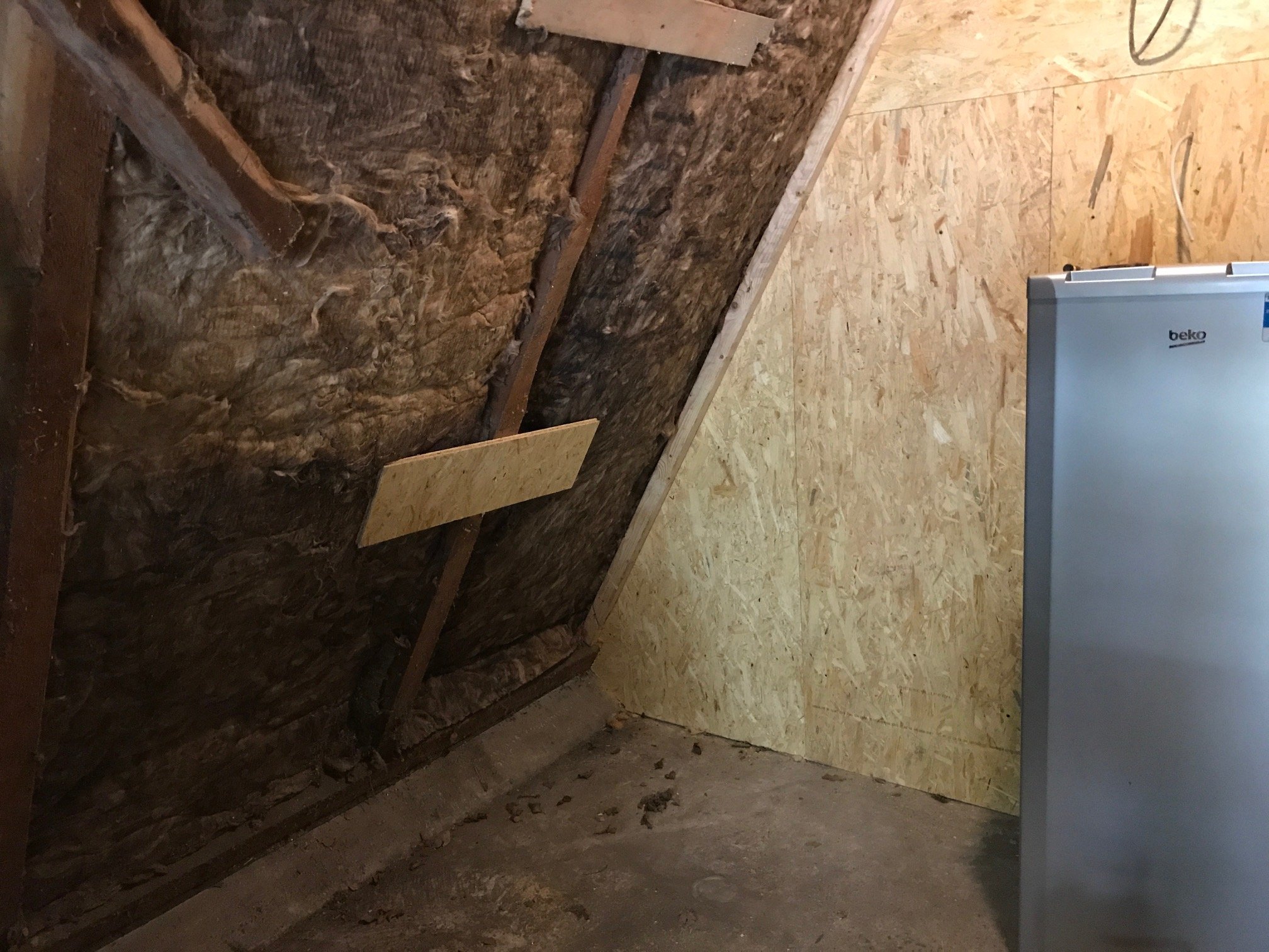 Hier sieht man schon die ersten strippen für Licht und Steckdosen Es sieht noch total wüst aus aber das erste was platz gefunden hat ist einer meiner Reife Kühlschränke