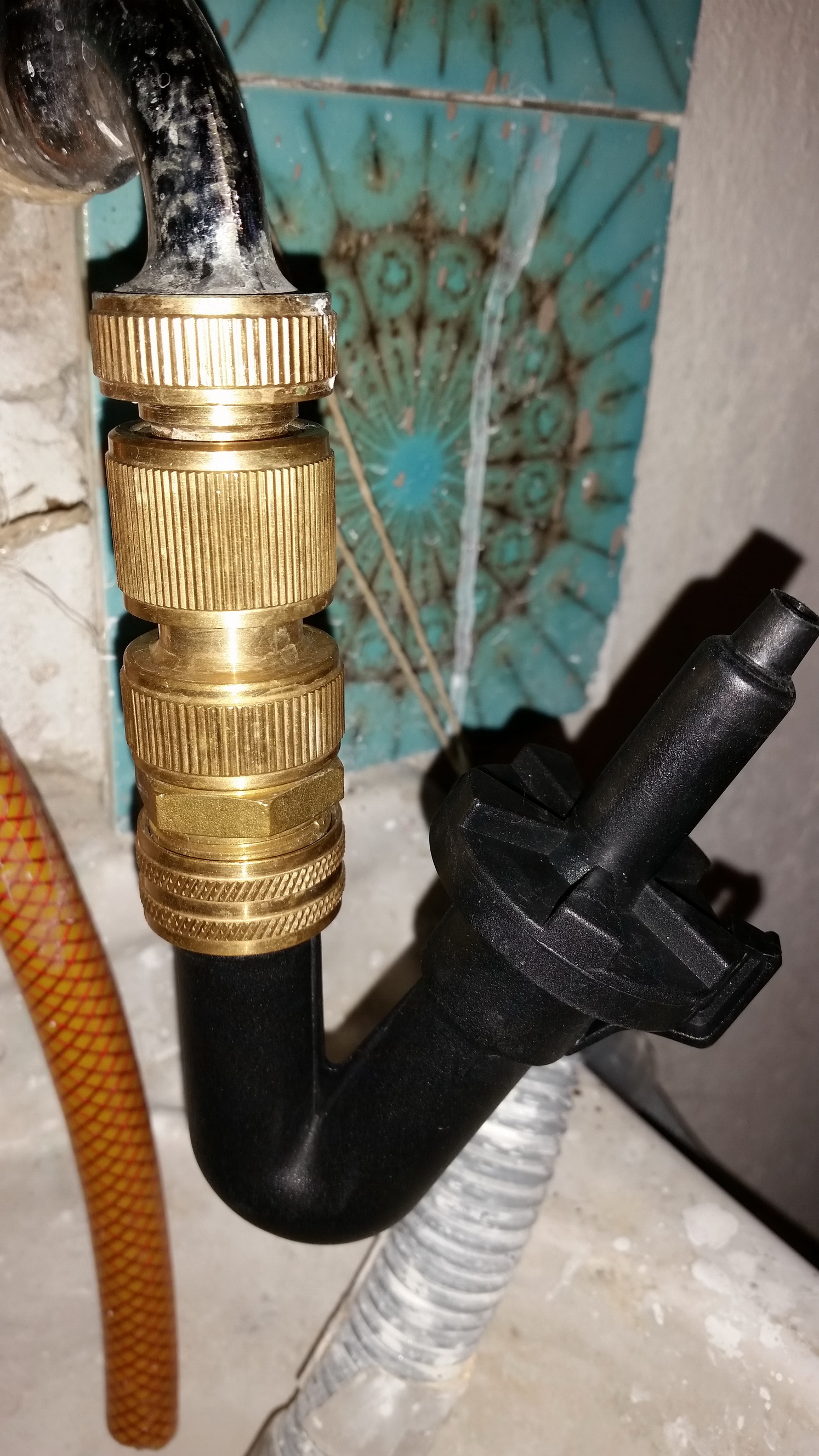 Ich hab auch den doppelten. Wenn der Anschlussschlauch zu kurz ist, kann man einen längeren (und auch Wunsch flexibleren) von Baumarkt raufstecken. Ist mit einer Schlauchschelle befestigt. Ich schließe ihn übrigens über eine Gardena-Kupplung an, die auf den Schlauch passt. Den Blast finde ich super und spüle damit mittlerweile auch die Trinkflaschen der Kinder.
