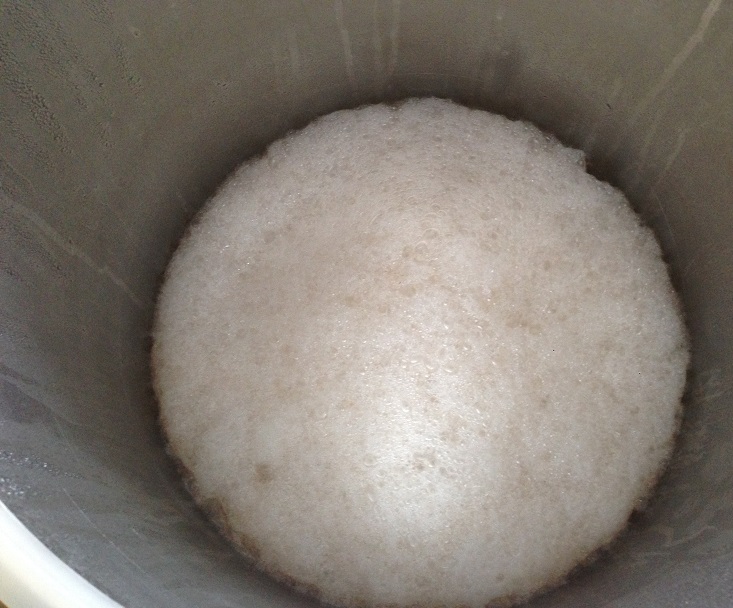 Bier gärt recht langsam. Es ist jetzt seit 6 Tagen eigentlich unverändert bei 10 Brix, was umgerechnet 5°P sein sollten. Aber immer noch Schaum auf der Decke, und eine ziemliche Gärgasentwicklung.