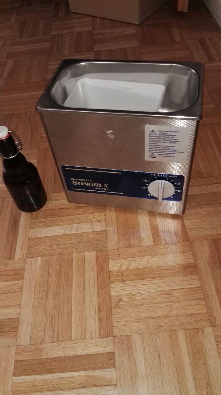 Mein Ultraschallbad - mit 0,3l Flasche als Größenvergleich
