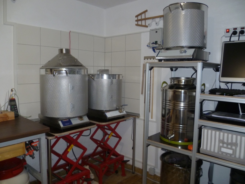 Momentan vorhanden sind der 50 und der 36 Liter Kessel in Edelstahl sowie das Rührwerk, Läuterfreund und Armaturen sind quasi auf dem Weg zu mir.