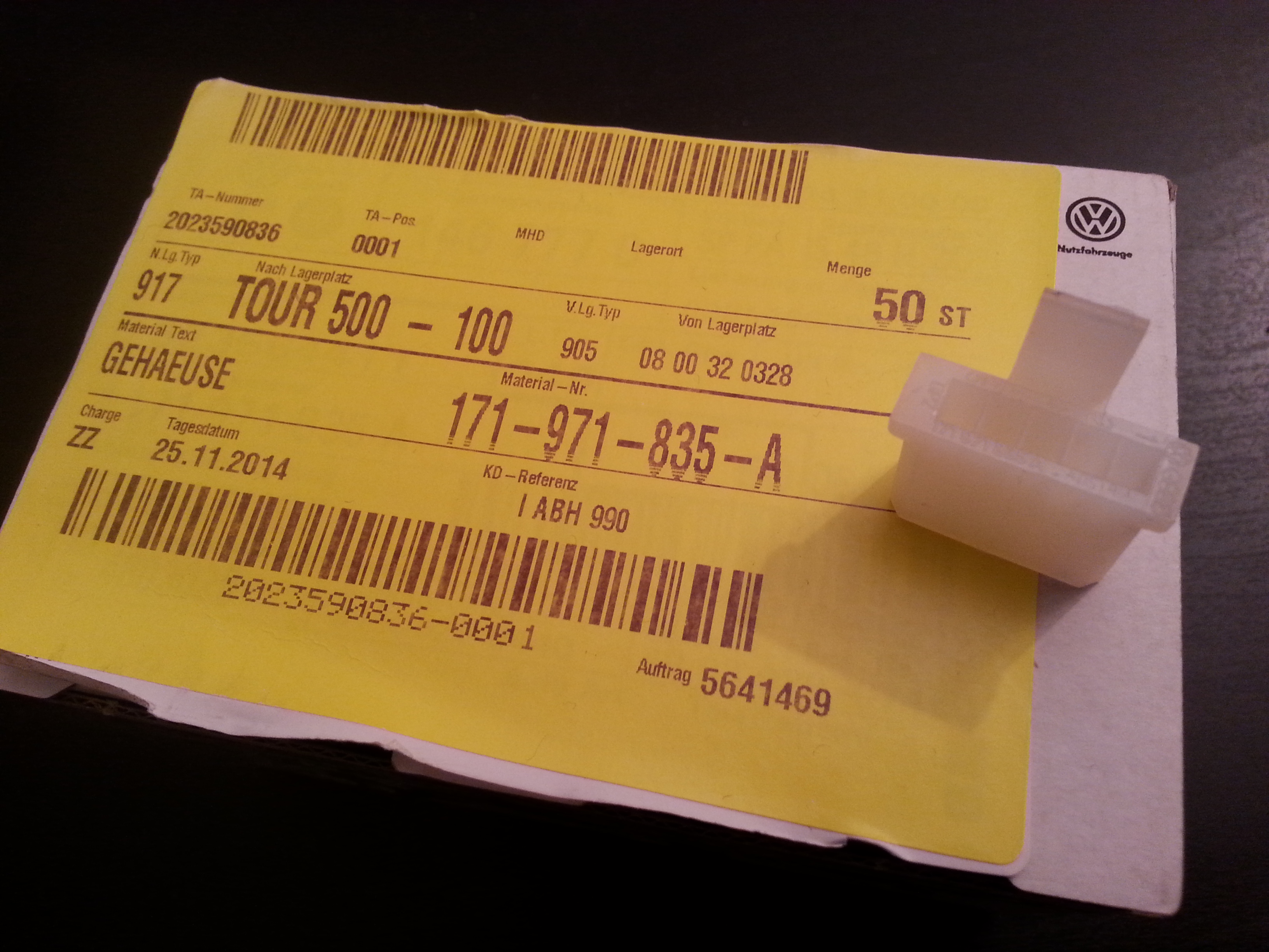 Die Nummer die du gepostet hast sind kein VW Nummern. Hast du nicht auf der Rechnung noch eine Vergleichsnummer stehen??