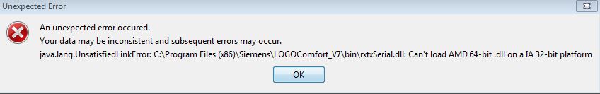 Ich bin zwar weder Logo- noch Windows-Spezialist, aber der Fehler sieh schon danach aus, als ob sich da 32- und 64-bit-Software beißen.