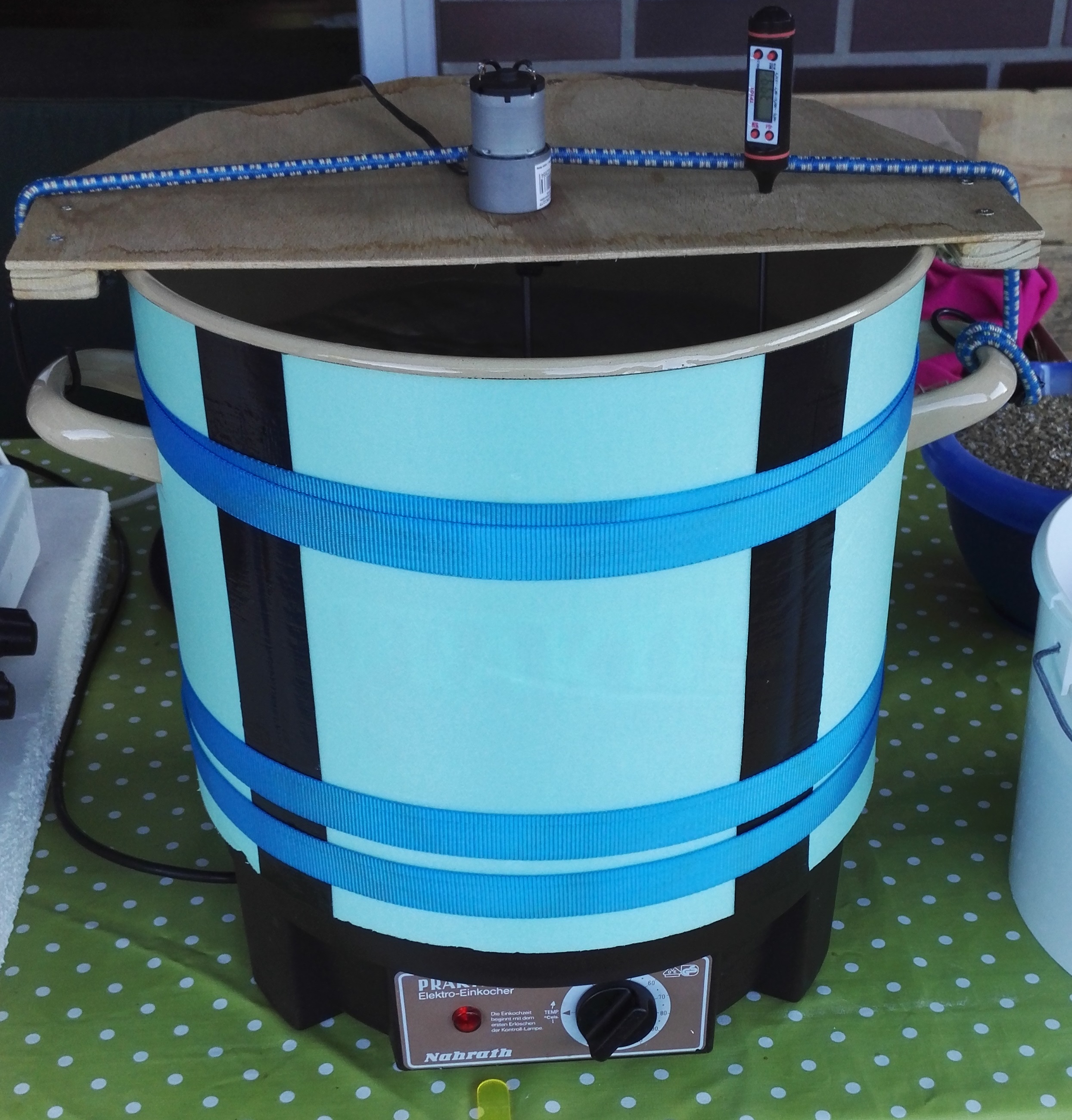 Für meinen Einkocher hatte ich mir nicht selbstklebendes Kaiflex besorgt und angepasst. Fixiert mit Zurrgurten am Topf kann das immer wieder abgenommen werden. Das Problem dabei: sobald Würze zwischen Topf und Isolierung kommt klebt das wie Hulle, beim Abnehmen vom Topf bleiben immer Reste am Topf kleben.