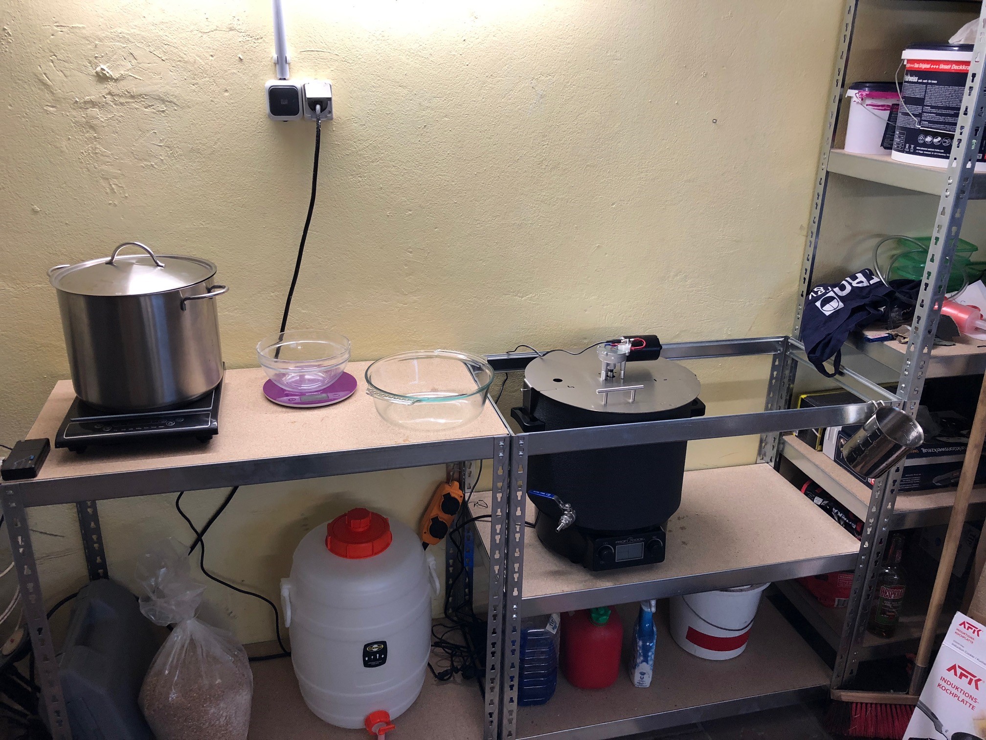 Ich bin 33 Jahre alt und wohne in Bremen. Bisher hab ich mit Brausets (Besserbrauer) experimentiert und ein paar Sude in der Küche mit 5l Eimern gemacht. Als wir Anfang diesen Jahres in unser Haus gezogen sind, habe ich beschlossen mir einen Einmachtopf von ProfiCook zu bestellen und es damit zu versuchen. Über einige Monate hab ich mir immer mal wieder etwas dazu bestellt und nun ist meine Ausrüstung komplett, zumindest für den ersten Test.
