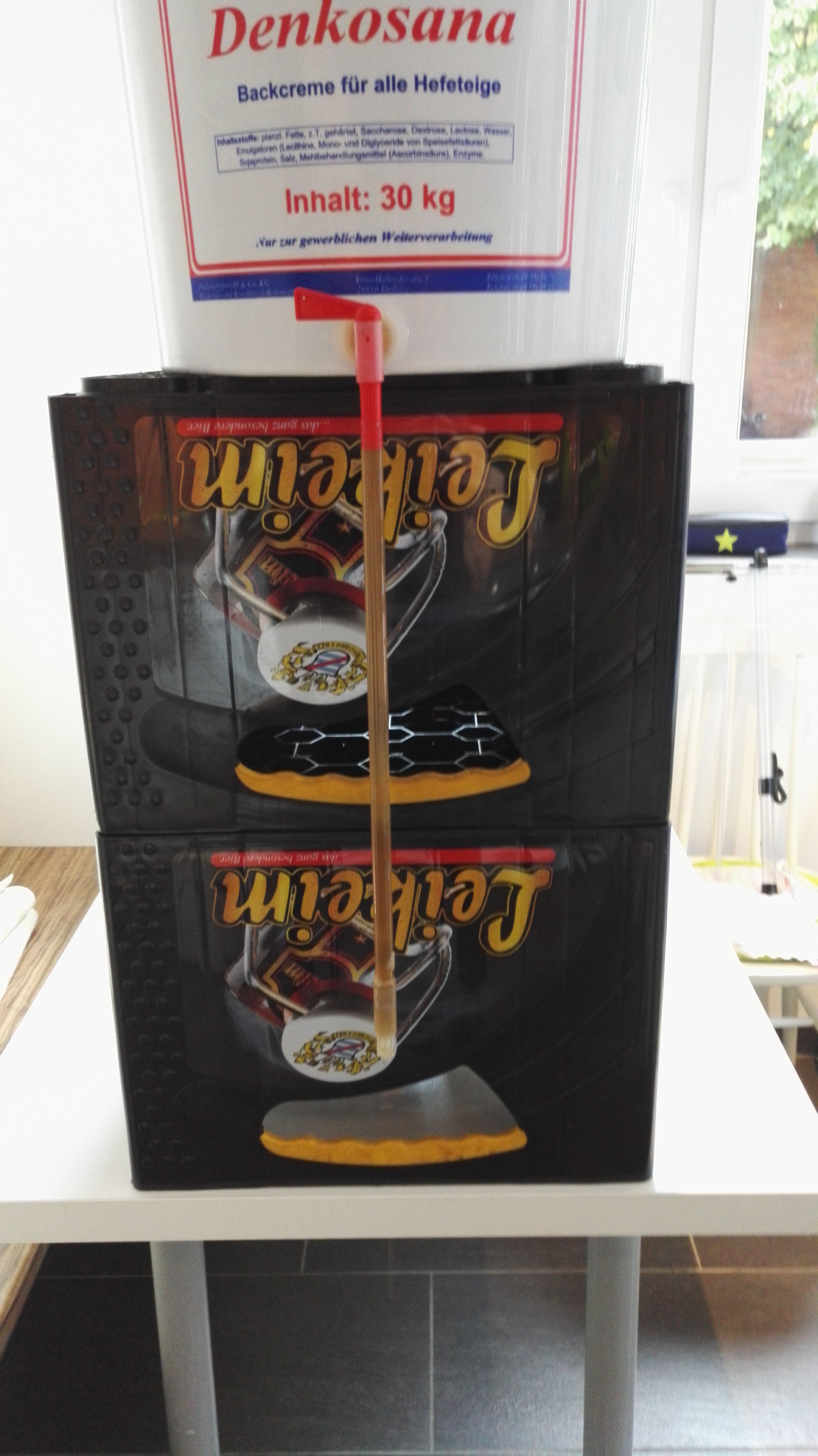 dass jemand ein Etikett mit dem Rezept auf seinen Gäreimer klebt hab ich noch nie gesehen. Sehr vorbildlich!