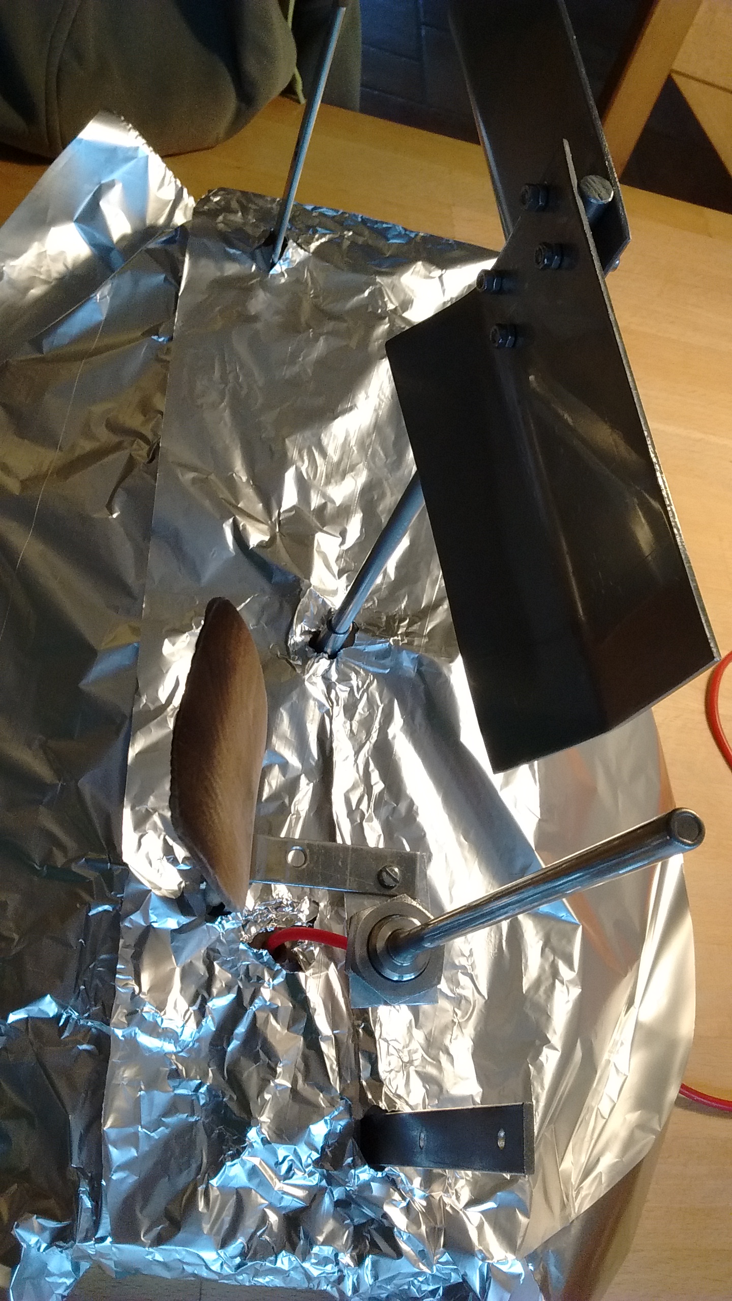 - Selbst gebautes Rührwerk: leider ist das Holz auch nach intensivem Einölen extrem instabil, daher von unten immer mit Alufolie abgedeckt (suboptimal...)