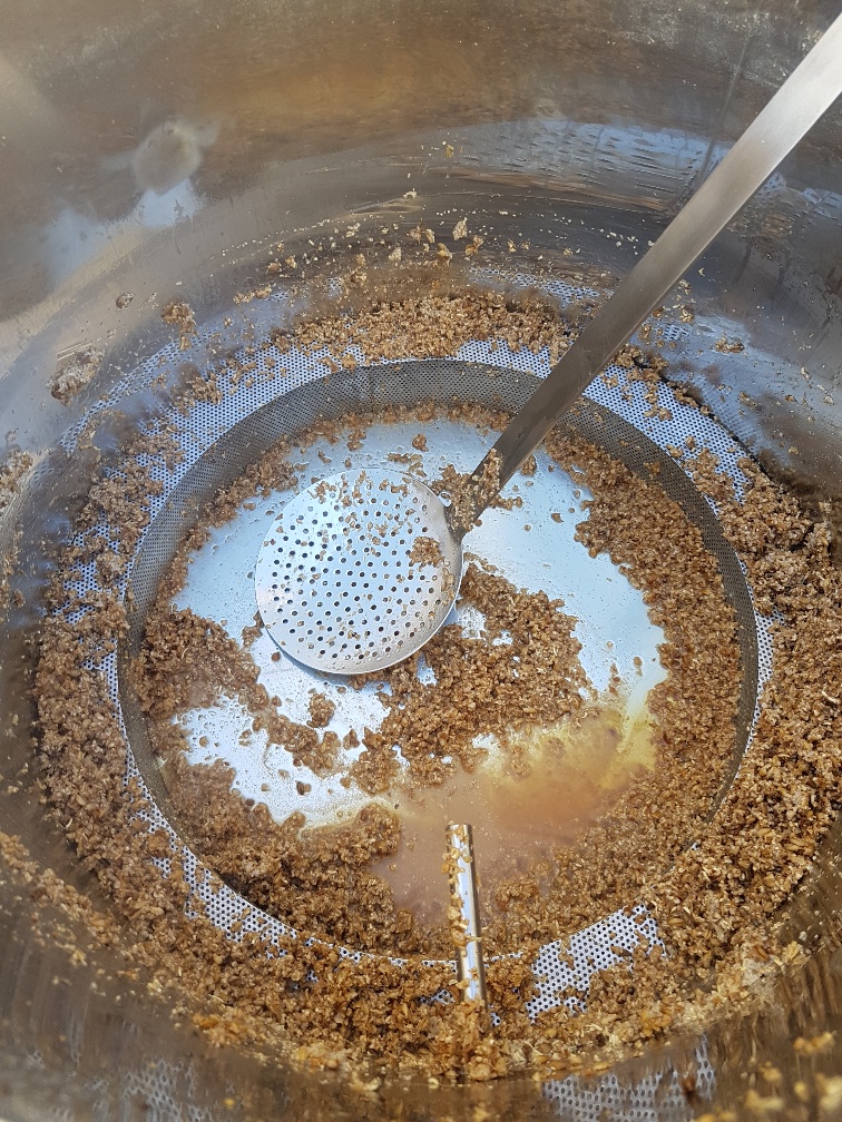 Der Treber sah gut aus. Zuvor hatte ich immer einen Läuterboden, bei dem ich den Zwischenraum mit temperiertem Wasser aufgefüllt habe. Das hat natürlich immer eine gewissen Verdünnung bewirkt - ist zwar alles machbar und lässt sich berücksichtigen, aber es beibt eine Verdünnung.