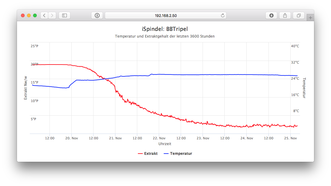 Auch ich beobachte im Moment bei meinem Hafer Milk Stout den Temperatureinfluss auf die Hefe die zum Schluss etwas "zickig" vergärt und bei 1°C plus doch wieder mit der Arbeit weiter macht. Die Kurvendarstellung ist da zumindest für mich sehr,sehr hilfreich