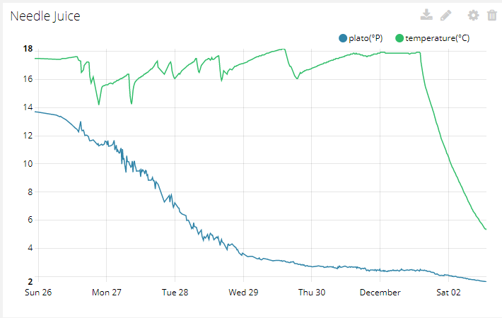 Ich bin jetzt mal ganz doof davon ausgegangen, das es bei der iSpindel analog ist. Ist es aber anscheinend nicht: Das ist das Ende der Gärung mit eingeleitetem Coldcrash: