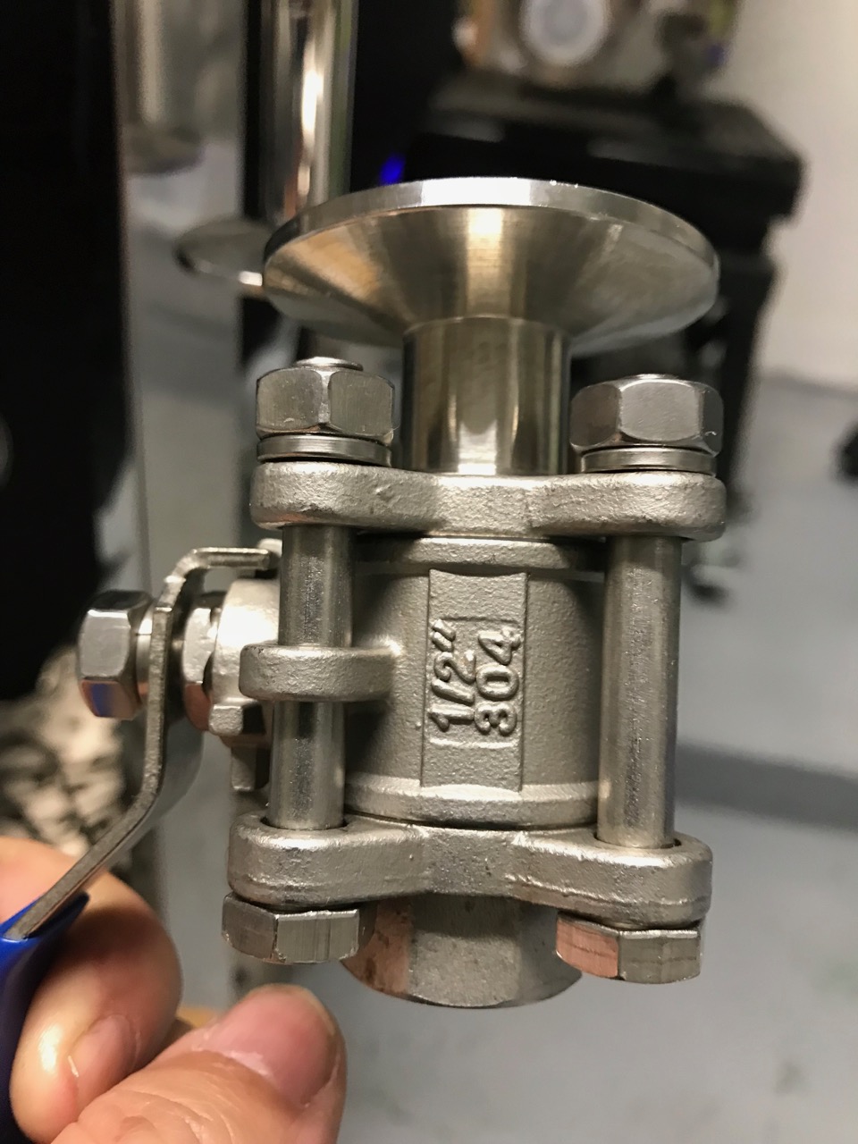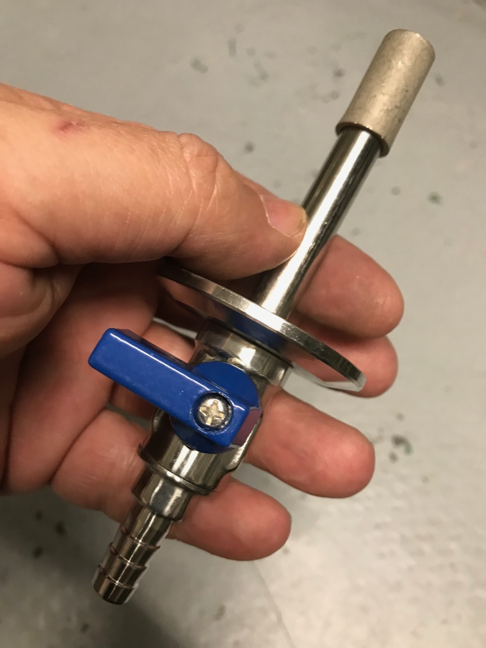 Aus dem Brite oder Unitank unter Druck carbonisiertes Bier mit Beergun in Flaschen füllen oder in Keg Umdrücken. Für den Anschluss der Beergun gibt es verschiedene Möglichkeiten wie z.B. eine 1,5“ TC Scheibe mit 1/4“ Gewinde mit Quick Disconnect für Bierschlauch. Ich habe mir eine 1,5“ TC Blindscheibe durchgebohrt und ein NC Getränkeventil eingebaut.