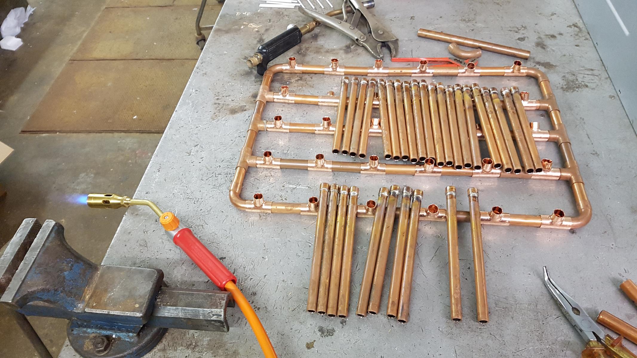 Im Dad´s ehemaligen Fundus waren einige Kupferfittinge, Kupferleitungen und Messingsachen vorhanden. Die Endkappen und T-Stücke musste ich mir kaufen, da waren leider nimmer soviele da.