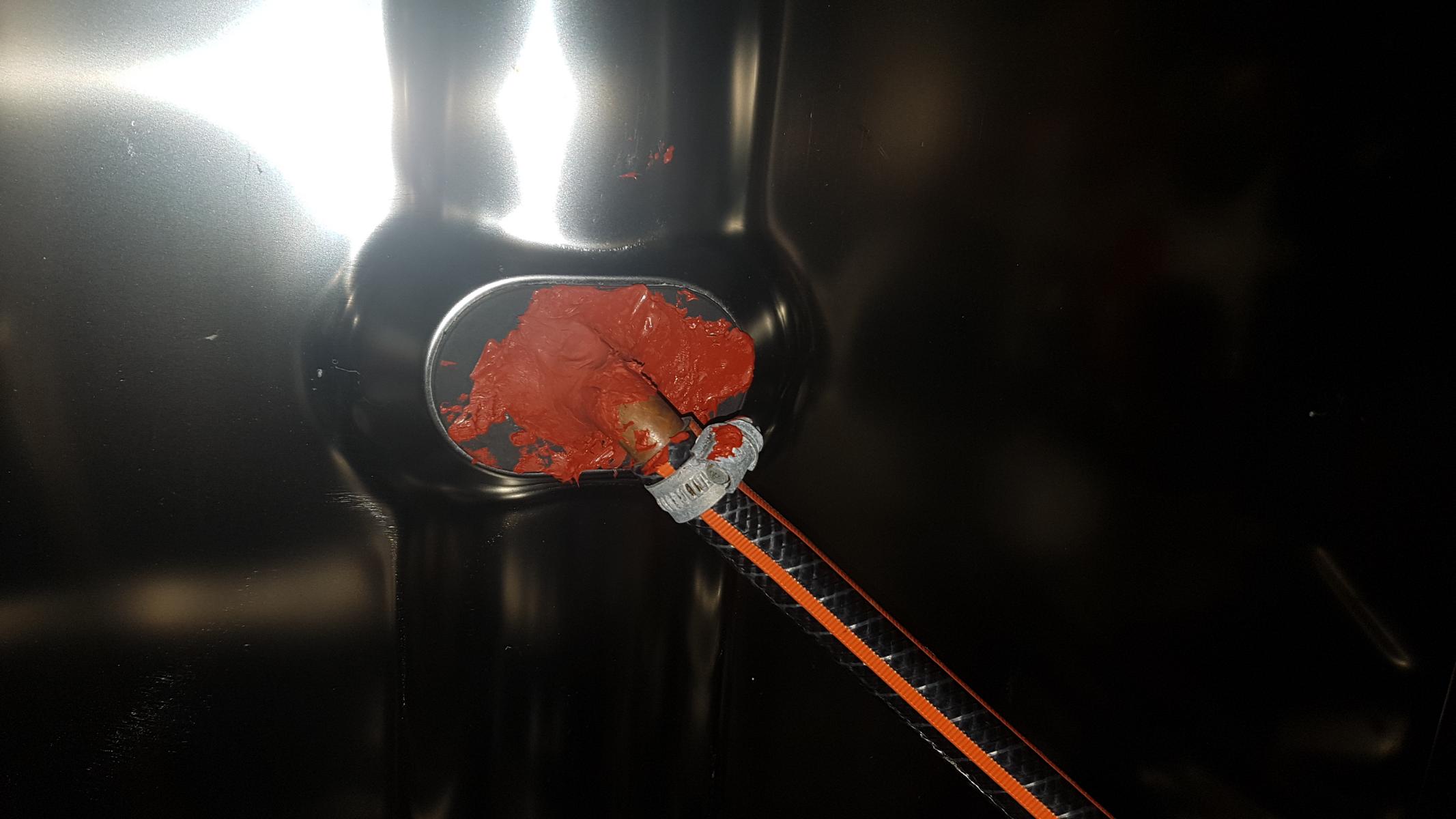 Bei der Maschine kommt das warme Wasser aus dem Anschluss der Rückseite. Deshalb musst ich noch eine 2. Versorgungsleitung einfügen (war auch besser zwecks dem Wasserdruck/Wassermenge, nur ein Schlauch war zuwenig). Ich habs mir einfach gemacht und die Schlauchanschlüsse (Kupferrohr/Bogen) mit Hochtemperatursilikon reingeklebt. Bis jetzt hälts...