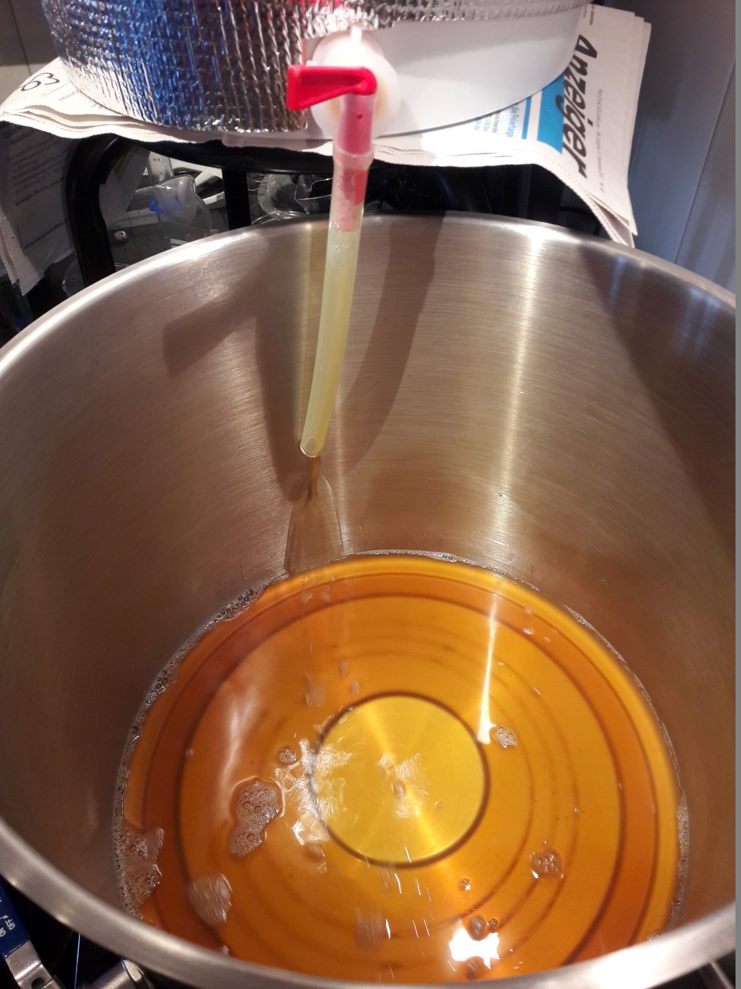 Nach dem Umschöpfen gibts noch ca. 10-15min läuterruhe (Zeit zum Einkocher reinigen, diese Vorgehensweise habe ich hier im Forum gelernt, vielen Dank dafür)