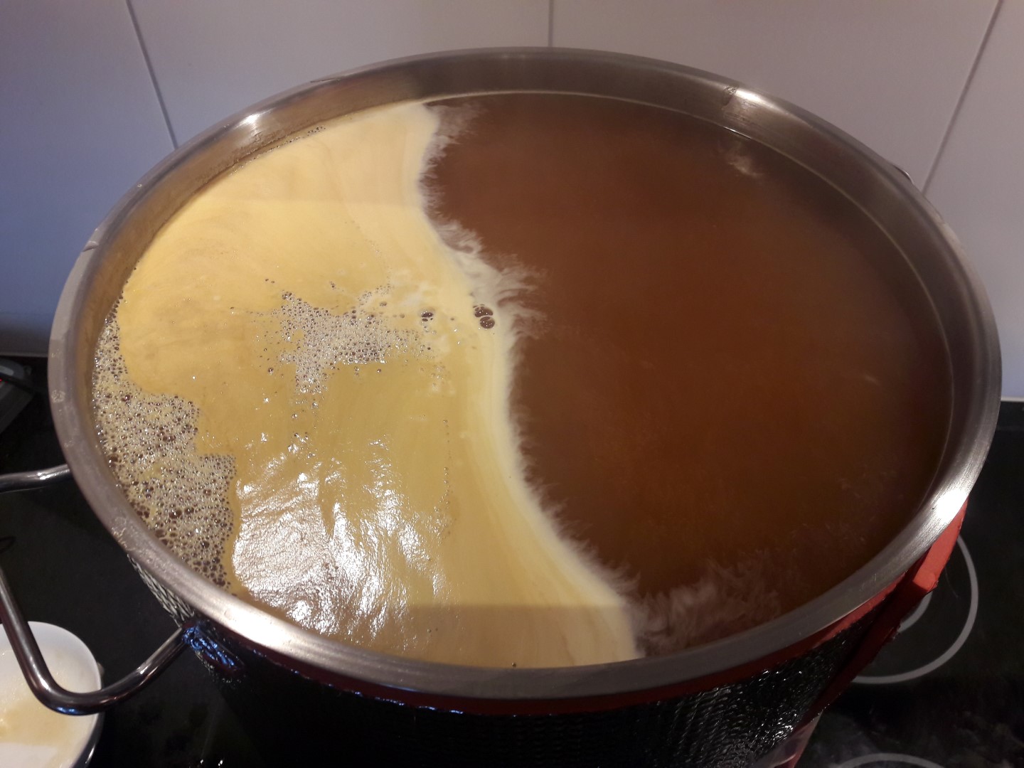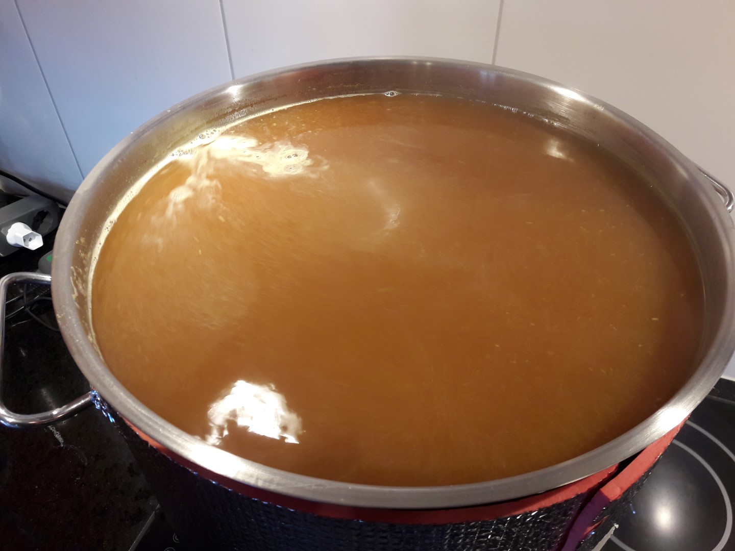 Für den Nachguss habe ich einen 12L Topf aufm Herd.
