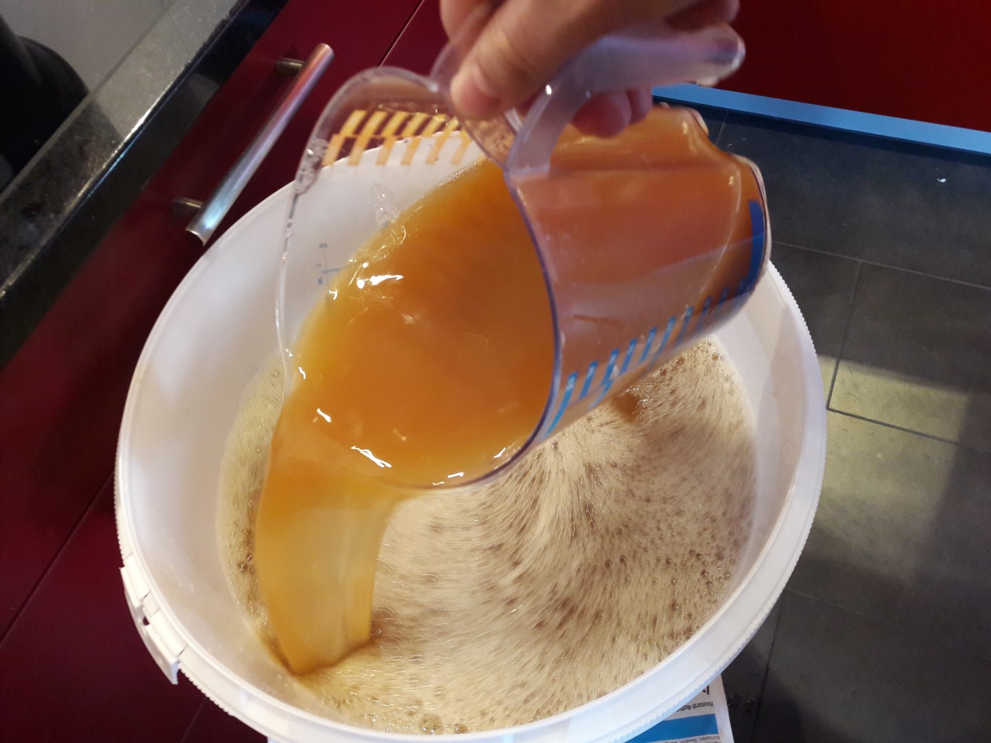 Geht bei mir eben nicht so gut, weil ich links vom Einkocher läutere und die Platte rechts davon ist, darum muss ich den Nachgusstopf umsetzen.