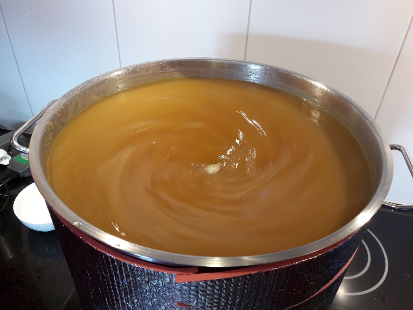 Früher habe ich noch 2-3x den Einkocher herumgehievt, habe aber dann schnell davon Wind bekommen dass das üble Unglücke provozieren kann. Nach dem Umschöpfen gibts noch ca. 10-15min läuterruhe (Zeit zum Einkocher reinigen, diese Vorgehensweise habe ich hier im Forum gelernt, vielen Dank dafür)