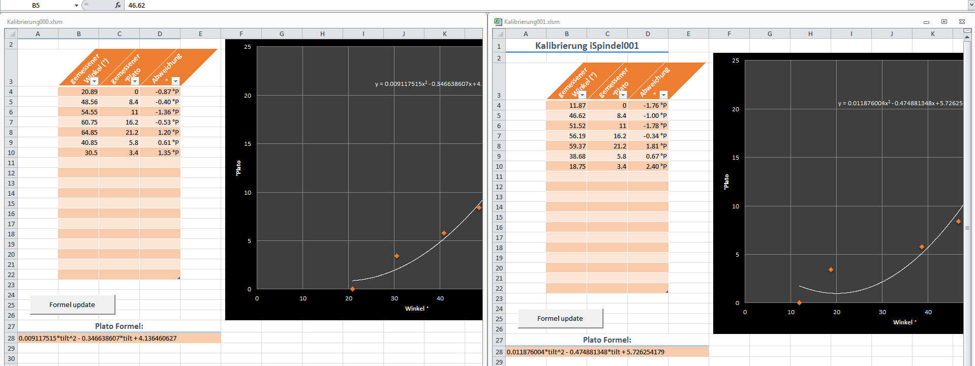 Sooo schlecht sieht das nicht aus. Die Temperatur der Probe ist beim Kalibrieren wichtig. Durch Verdünnen hat man z.B. schnell ein paar°C Abweichung. Bei der Glasspindel weichen wie Werte bei höherer Temperatur nach unten ab (Korrekturrechnung nötig) und bei der iSPindel mal nach oben und mal nach unten. Das ist iSpindel-individuell. Da gibt es kein System.