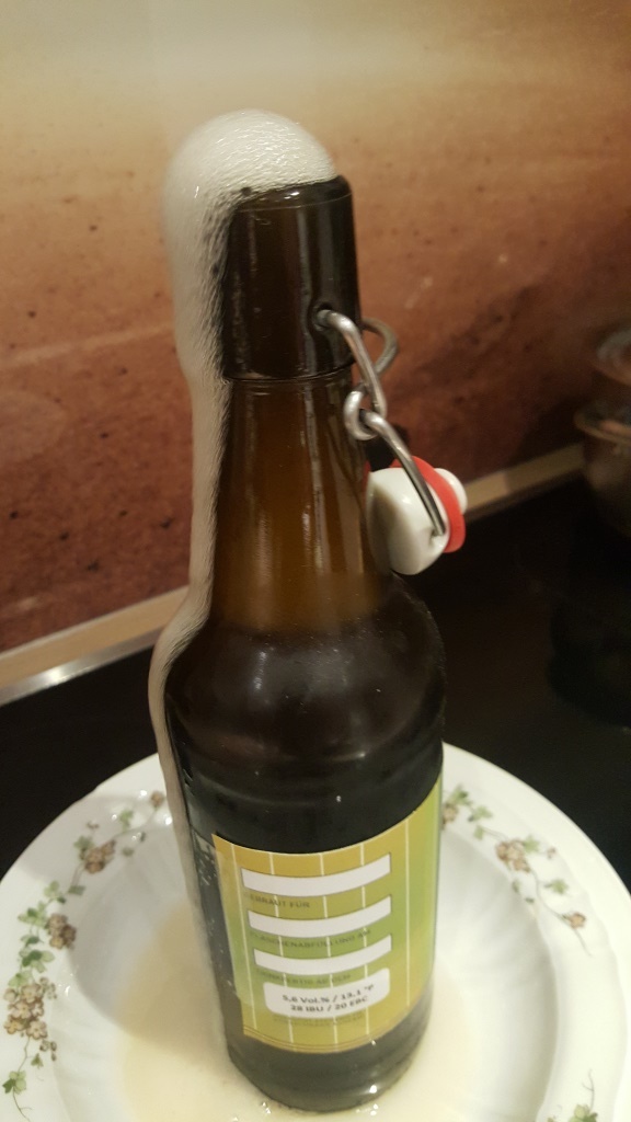 Danke für den Hinweis. Zunächst eine kleine Richtigstellung. Das am Anfang abgebildete Bier war das Honigbier. Außerdem ist das Amarillo nicht aus der Flasche gelaufen, sondern hat nur im Glas sehr stark geschäumt. D.h. wie gesagt wirklich übergelaufen sind bisher nur 2 von 30!
